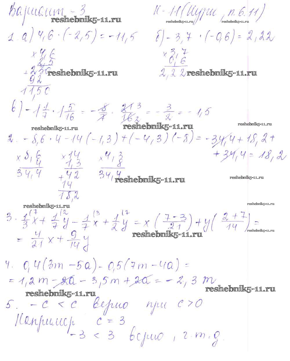 Готовая домашняя работа с ответами по Математике за 6 класс Чесноков, Нешков Дидактические материалы Академкнига 2014 ФГОС - КР-11 3