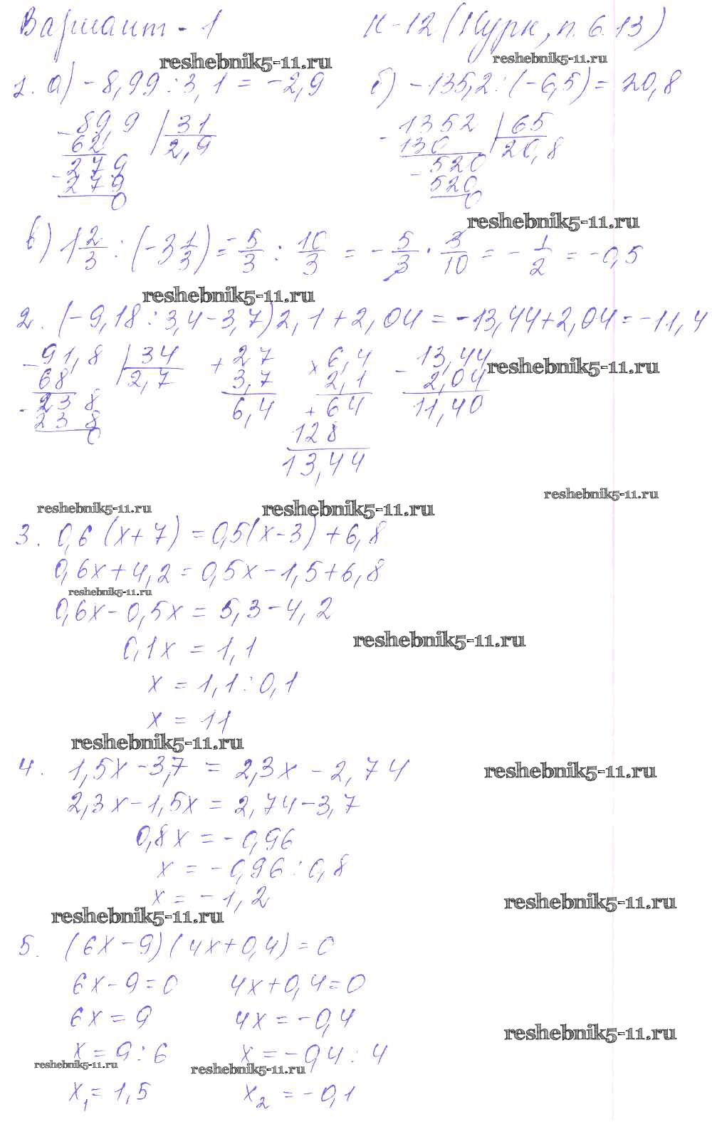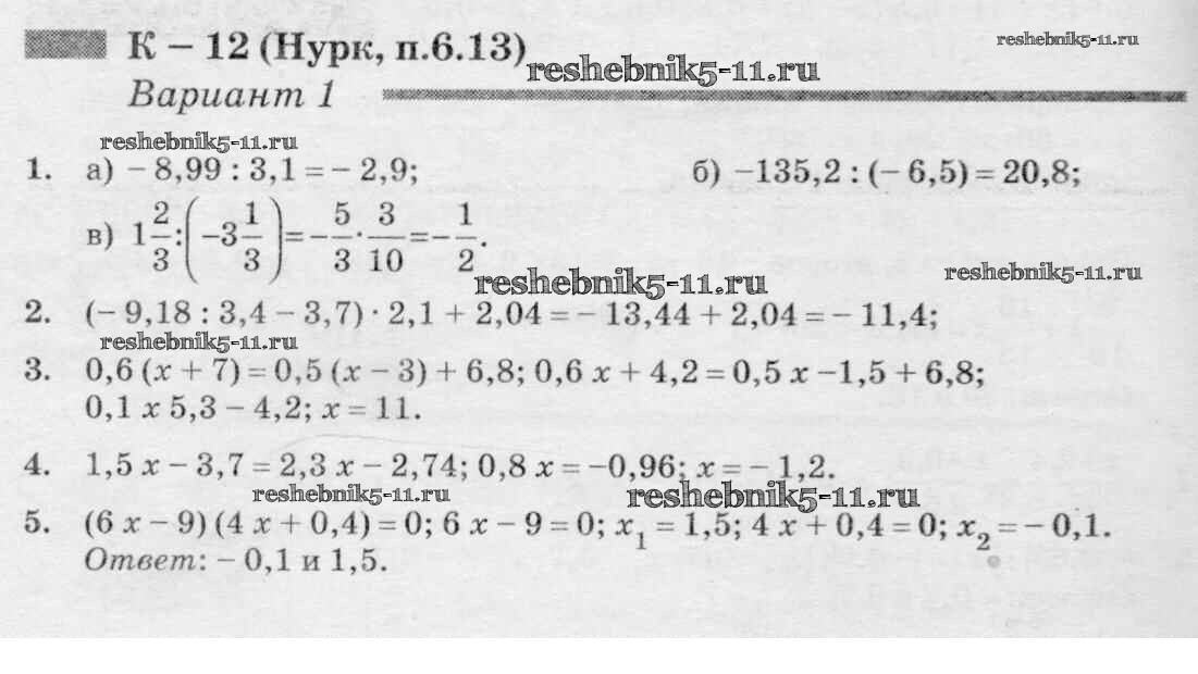 Готовая домашняя работа с ответами по Математике за 6 класс Чесноков, Нешков Дидактические материалы Академкнига 2014 ФГОС - КР-12 1