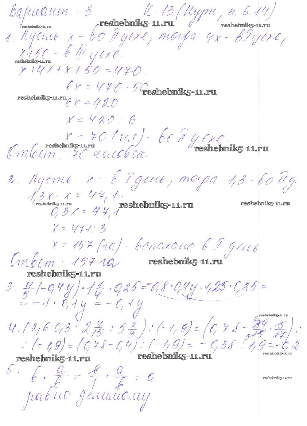 Готовая домашняя работа с ответами по Математике за 6 класс Чесноков, Нешков Дидактические материалы Академкнига 2014 ФГОС - КР-13 3