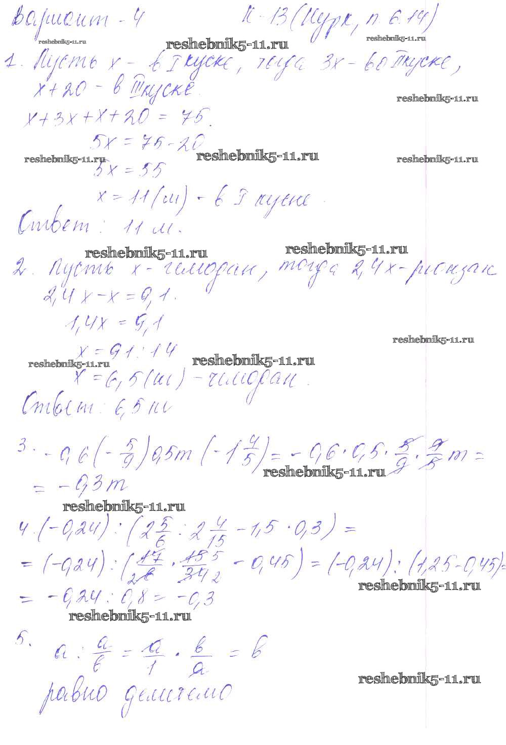 Готовая домашняя работа с ответами по Математике за 6 класс Чесноков, Нешков Дидактические материалы Академкнига 2014 ФГОС - КР-13 4