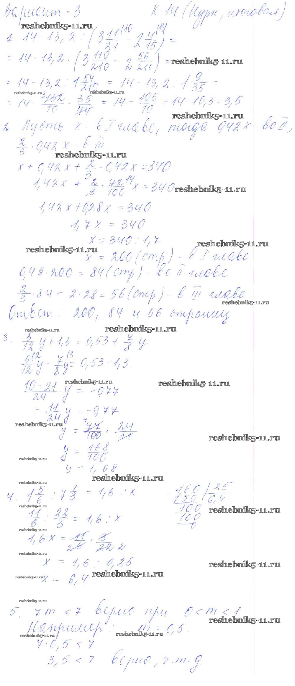 Готовая домашняя работа с ответами по Математике за 6 класс Чесноков, Нешков Дидактические материалы Академкнига 2014 ФГОС - КР-14 3