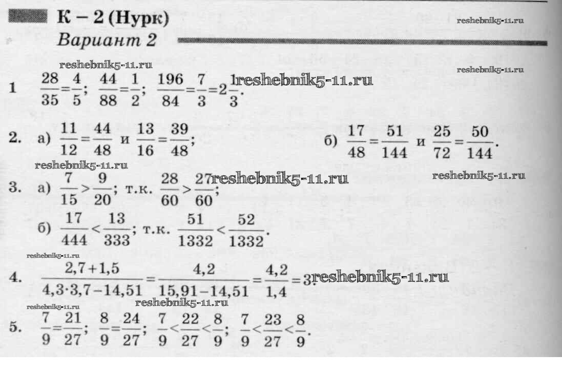 Готовая домашняя работа с ответами по Математике за 6 класс Чесноков, Нешков Дидактические материалы Академкнига 2014 ФГОС - КР-2 2