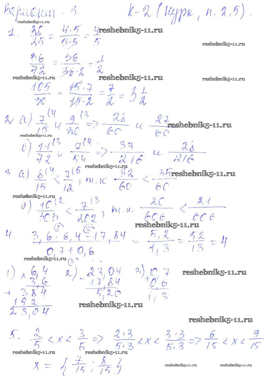 Готовая домашняя работа с ответами по Математике за 6 класс Чесноков, Нешков Дидактические материалы Академкнига 2014 ФГОС - КР-2 3