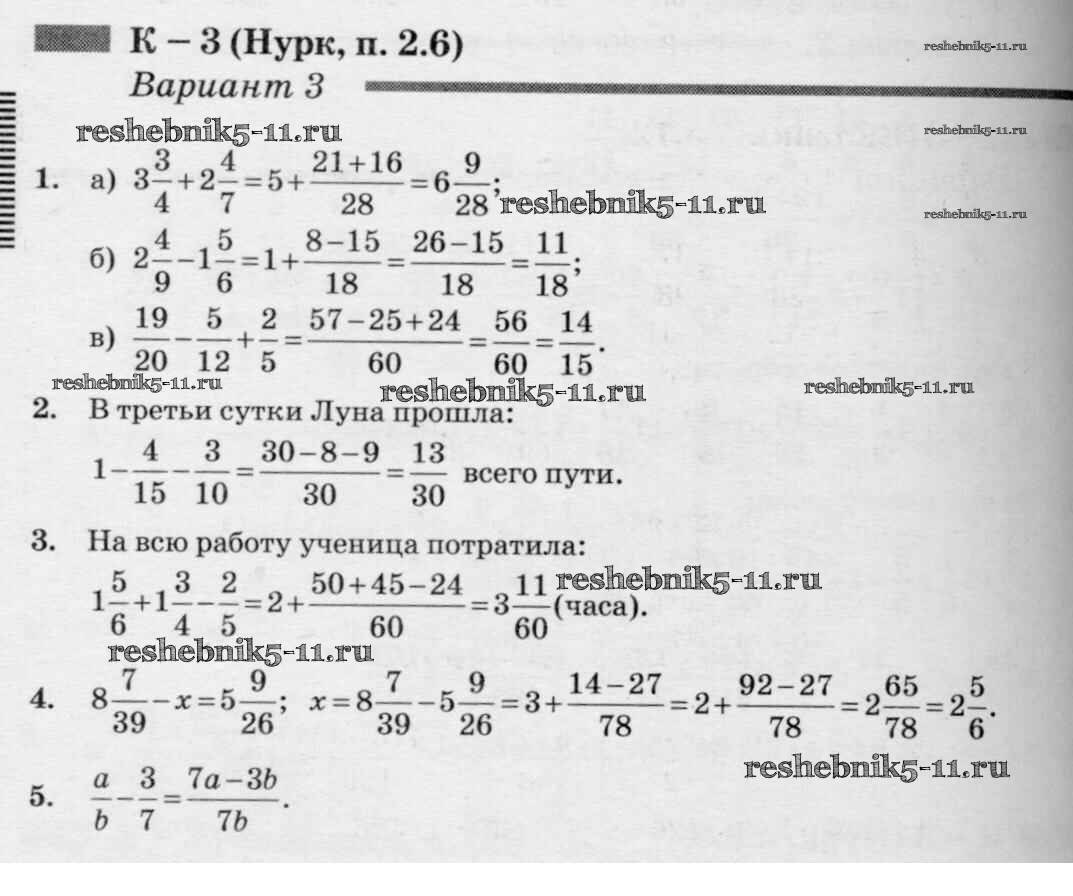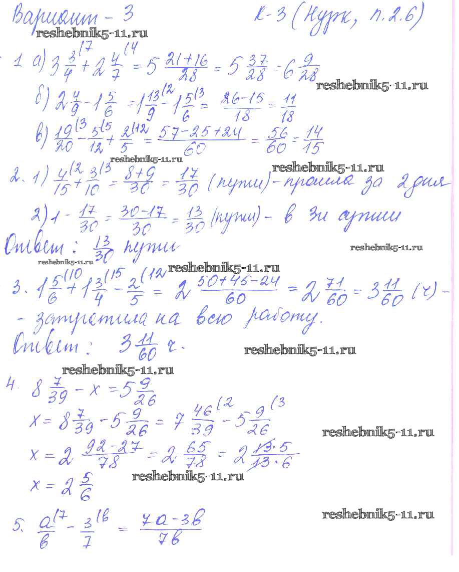Готовая домашняя работа с ответами по Математике за 6 класс Чесноков, Нешков Дидактические материалы Академкнига 2014 ФГОС - КР-3 3