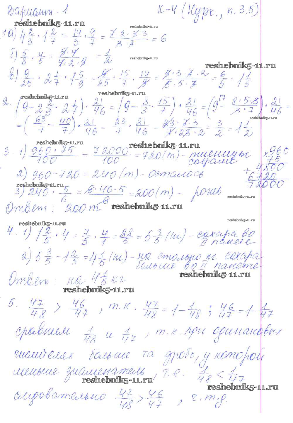 Готовая домашняя работа с ответами по Математике за 6 класс Чесноков, Нешков Дидактические материалы Академкнига 2014 ФГОС - КР-4 1