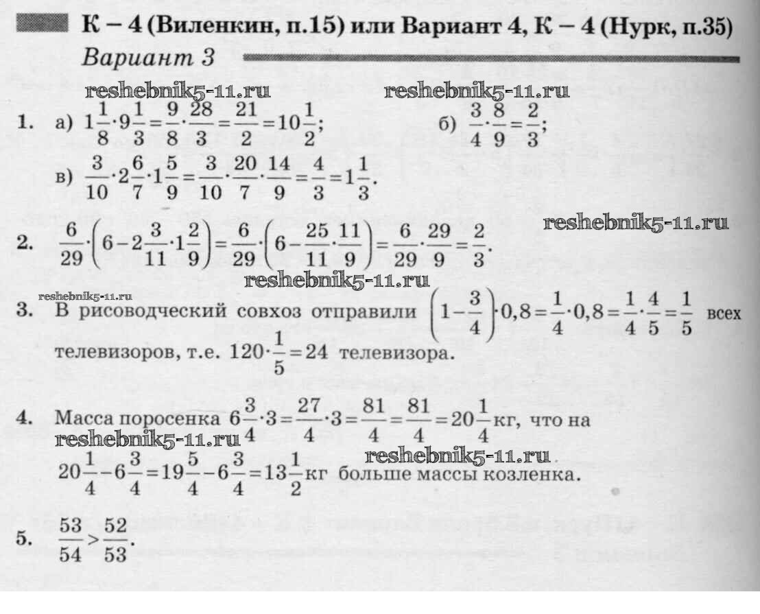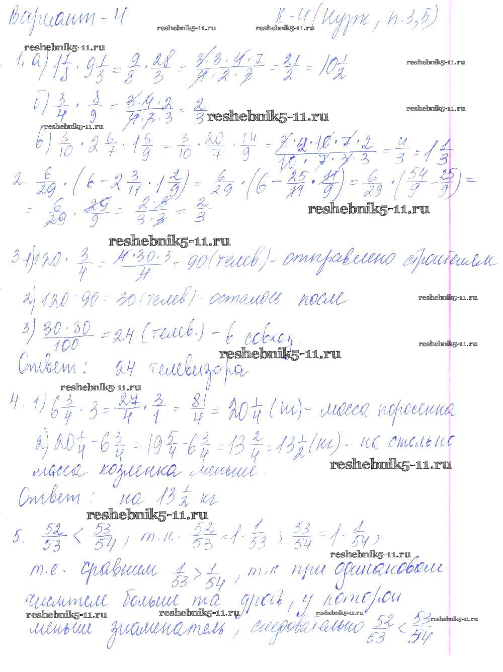 Готовая домашняя работа с ответами по Математике за 6 класс Чесноков, Нешков Дидактические материалы Академкнига 2014 ФГОС - КР-4 4