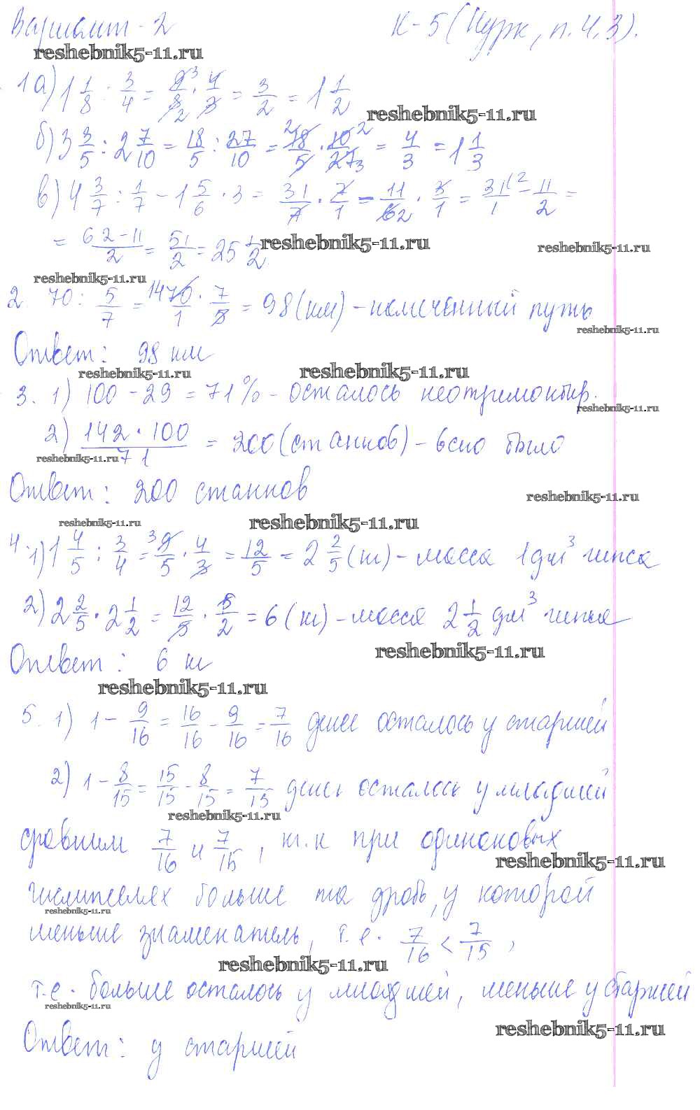 Готовая домашняя работа с ответами по Математике за 6 класс Чесноков, Нешков Дидактические материалы Академкнига 2014 ФГОС - КР-5 2