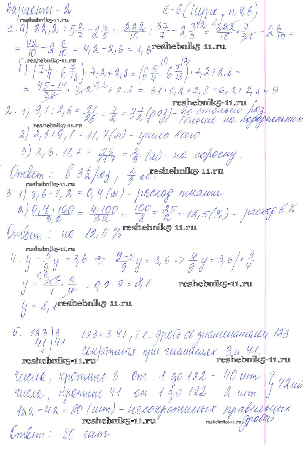 Готовая домашняя работа с ответами по Математике за 6 класс Чесноков, Нешков Дидактические материалы Академкнига 2014 ФГОС - КР-6 2