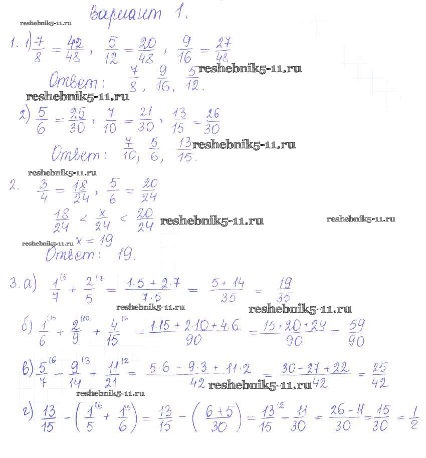 Готовая домашняя работа с ответами по Математике за 6 класс Журавлев, Изотова, Киреева Контрольные и самостоятельные работы УМК Экзамен 2015 ФГОС - СР-11. Варианты 1