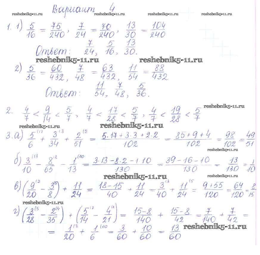 Готовая домашняя работа с ответами по Математике за 6 класс Журавлев, Изотова, Киреева Контрольные и самостоятельные работы УМК Экзамен 2015 ФГОС - СР-11. Варианты 4
