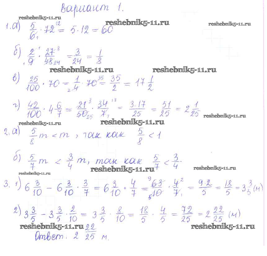 Готовая домашняя работа с ответами по Математике за 6 класс Журавлев, Изотова, Киреева Контрольные и самостоятельные работы УМК Экзамен 2015 ФГОС - СР-14. Варианты 1