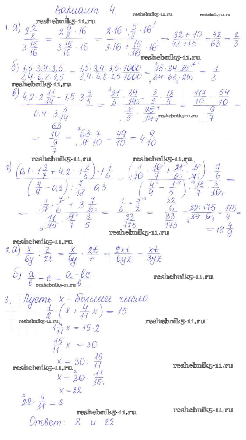 Математика за 6 класс Журавлев Контрольные и самостоятельные работы УМК Экзамен ср-19. вариант 4
