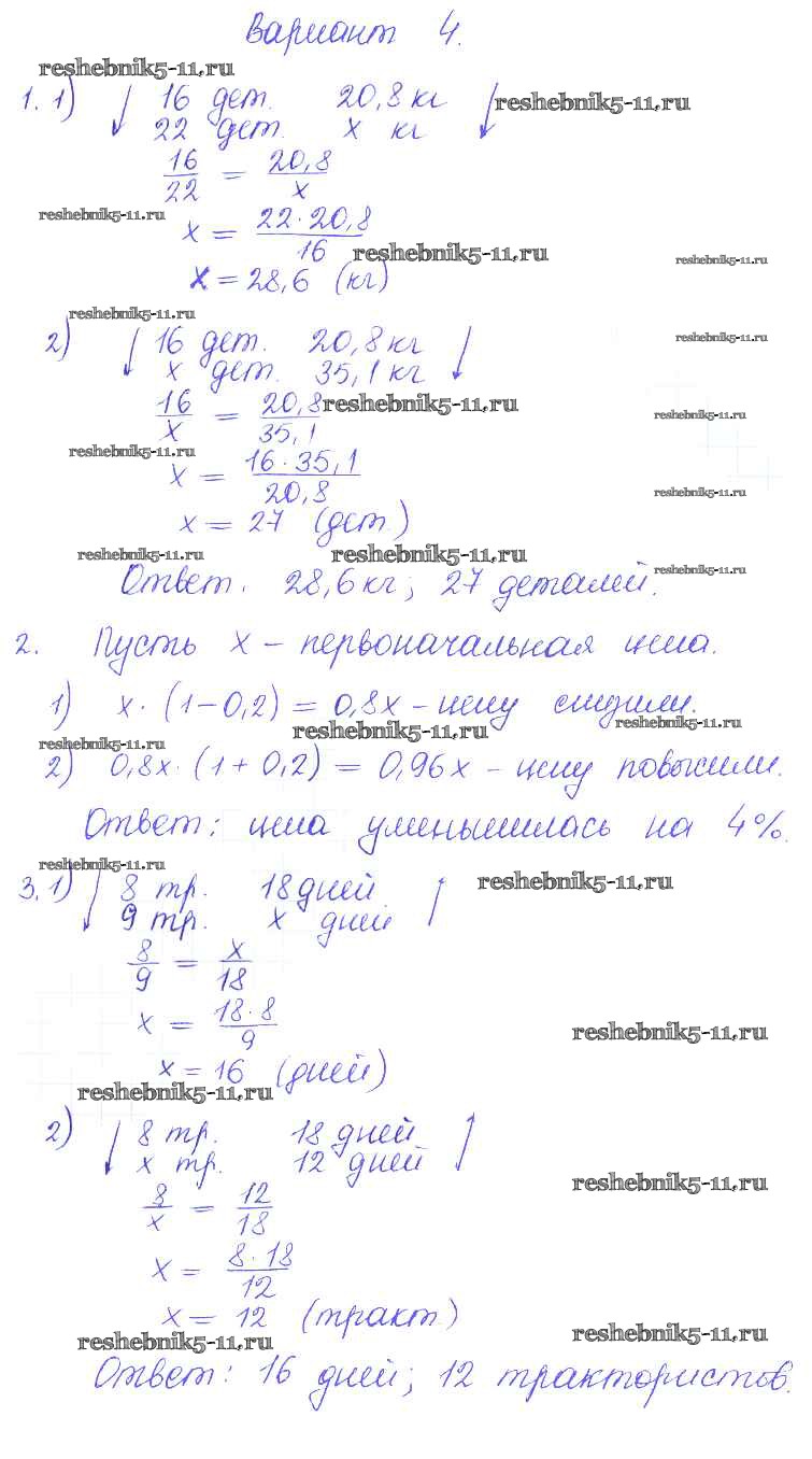 Готовая домашняя работа с ответами по Математике за 6 класс Журавлев, Изотова, Киреева Контрольные и самостоятельные работы УМК Экзамен 2015 ФГОС - СР-22. Варианты 4