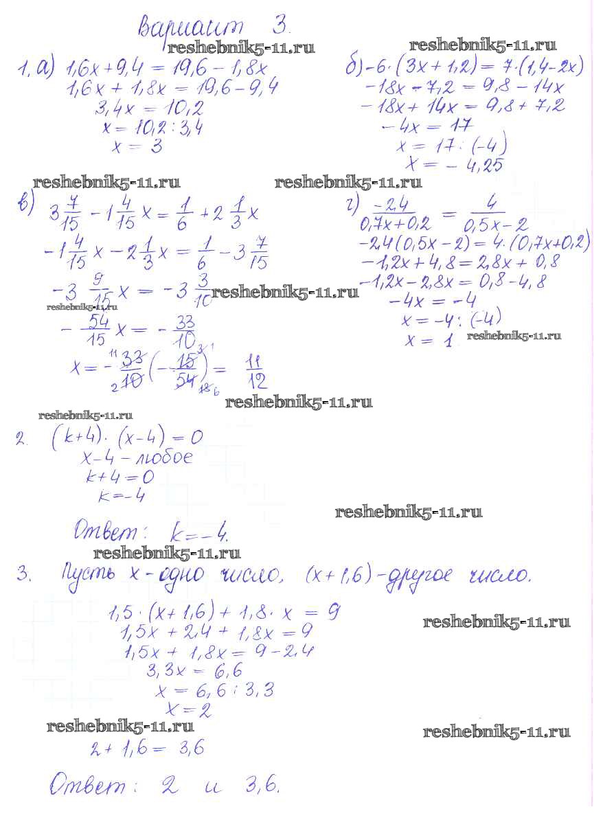 Готовая домашняя работа с ответами по Математике за 6 класс Журавлев, Изотова, Киреева Контрольные и самостоятельные работы УМК Экзамен 2015 ФГОС - СР-41. Варианты 3