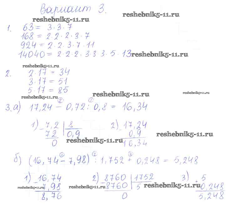 Математика за 6 класс Журавлев Контрольные и самостоятельные работы УМК Экзамен ср-5. вариант 3