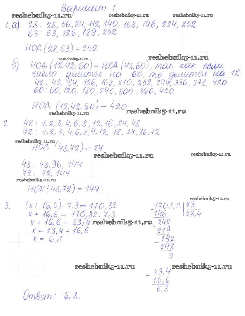 Готовая домашняя работа с ответами по Математике за 6 класс Журавлев, Изотова, Киреева Контрольные и самостоятельные работы УМК Экзамен 2015 ФГОС - СР-7. Варианты 1