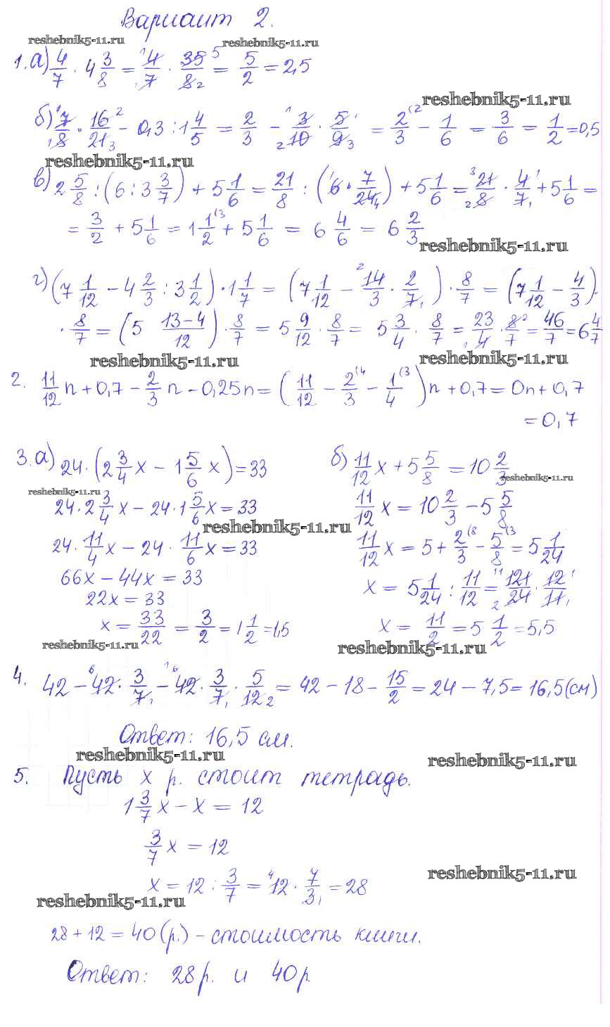 Математика за 6 класс Журавлев Контрольные и самостоятельные работы УМК Экзамен кр-3. вариант 2