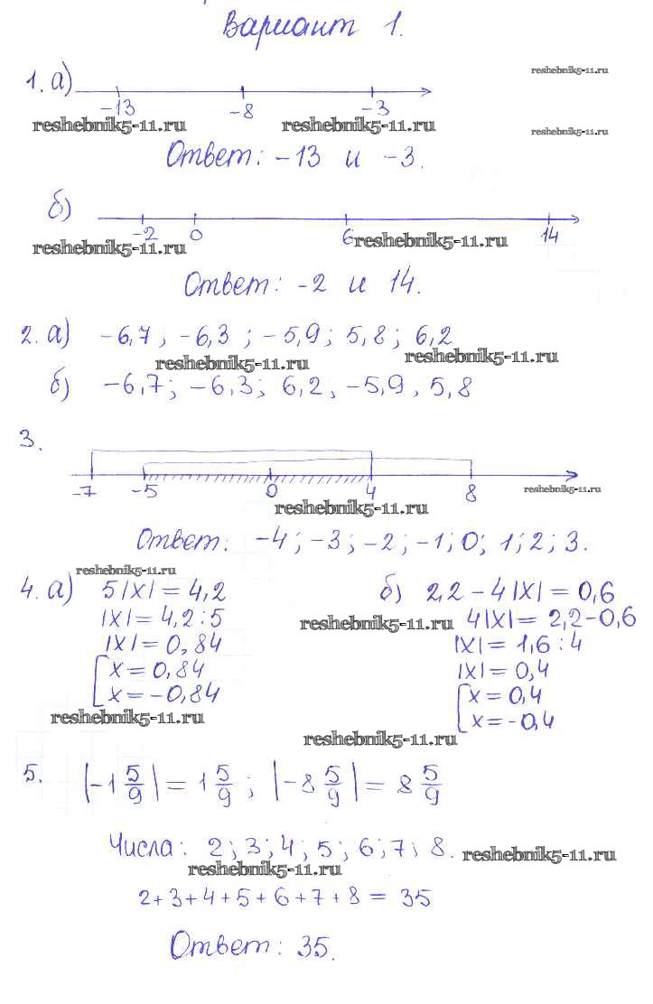 Готовая домашняя работа с ответами по Математике за 6 класс Журавлев, Изотова, Киреева Контрольные и самостоятельные работы УМК Экзамен 2015 ФГОС - КР-5. Варианты 1