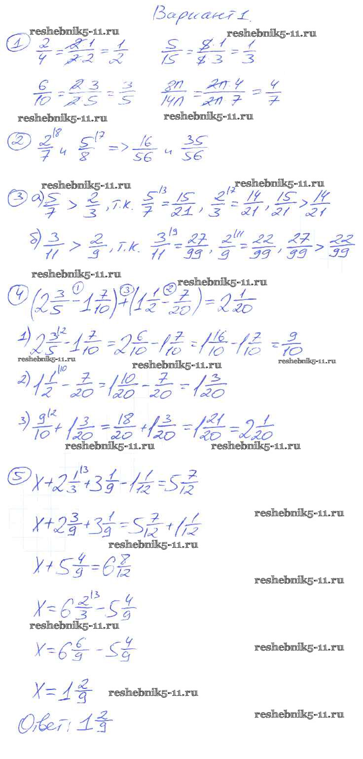 Готовая домашняя работа с ответами по Математике за 6 класс Попов Самостоятельные и контрольные работы УМК Экзамен 2017 ФГОС - КР-2. Варианты 1