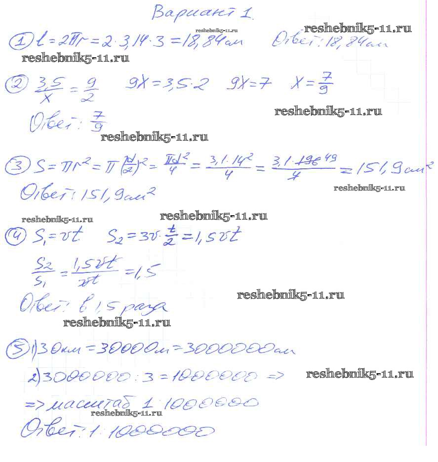 Готовая домашняя работа с ответами по Математике за 6 класс Попов Самостоятельные и контрольные работы УМК Экзамен 2017 ФГОС - КР-5. Варианты 1
