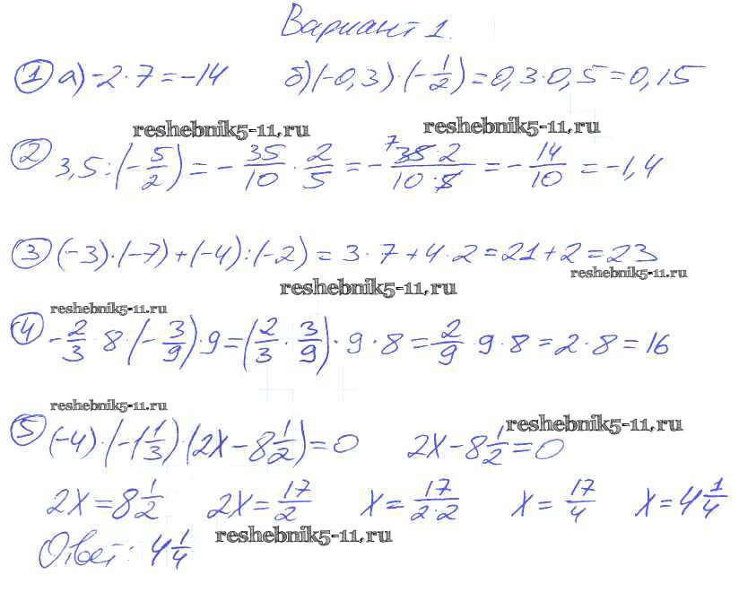 Готовая домашняя работа с ответами по Математике за 6 класс Попов Самостоятельные и контрольные работы УМК Экзамен 2017 ФГОС - КР-8. Варианты 1