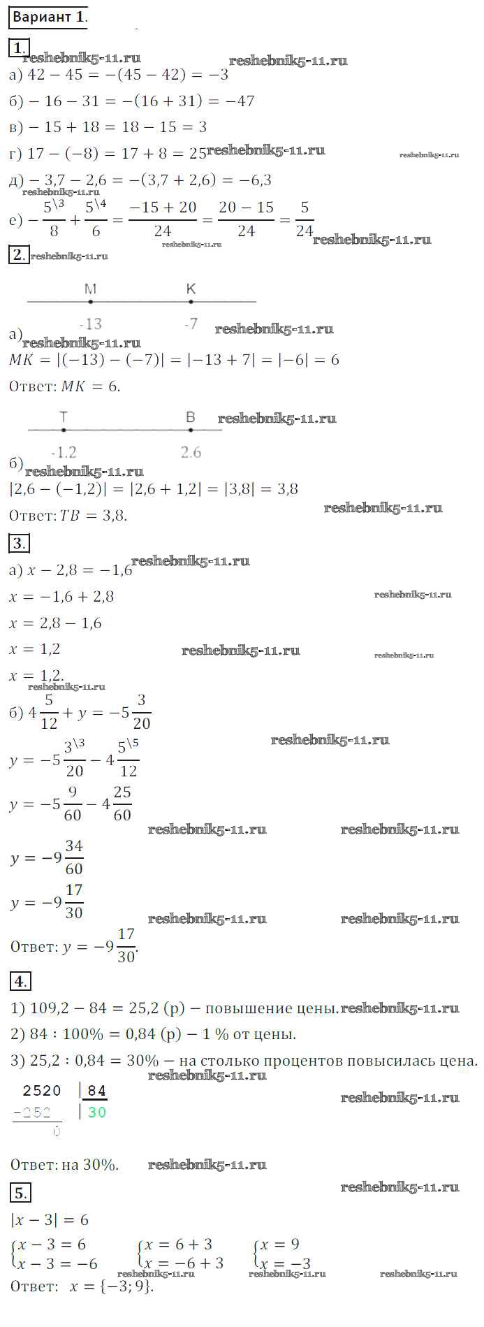 Готовая домашняя работа с ответами по Математике за 6 класс Жохов, Крайнева Контрольные работы Мнемозина 2011 ФГОС - КР-10. Варианты 1