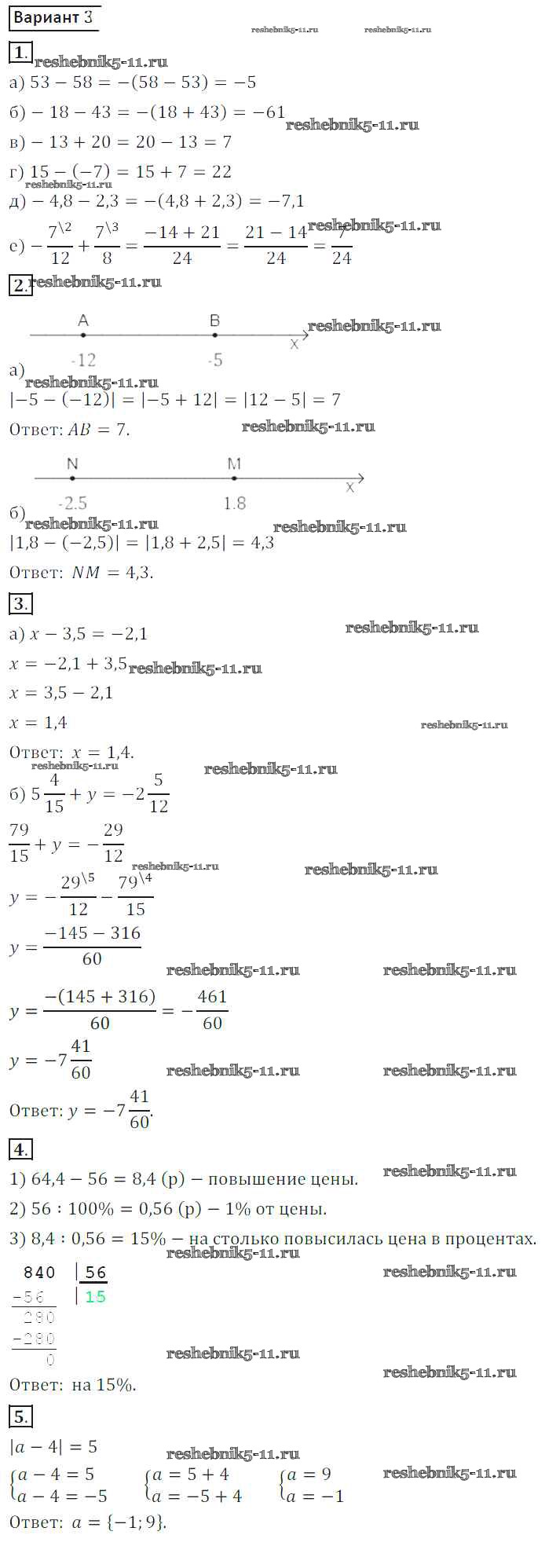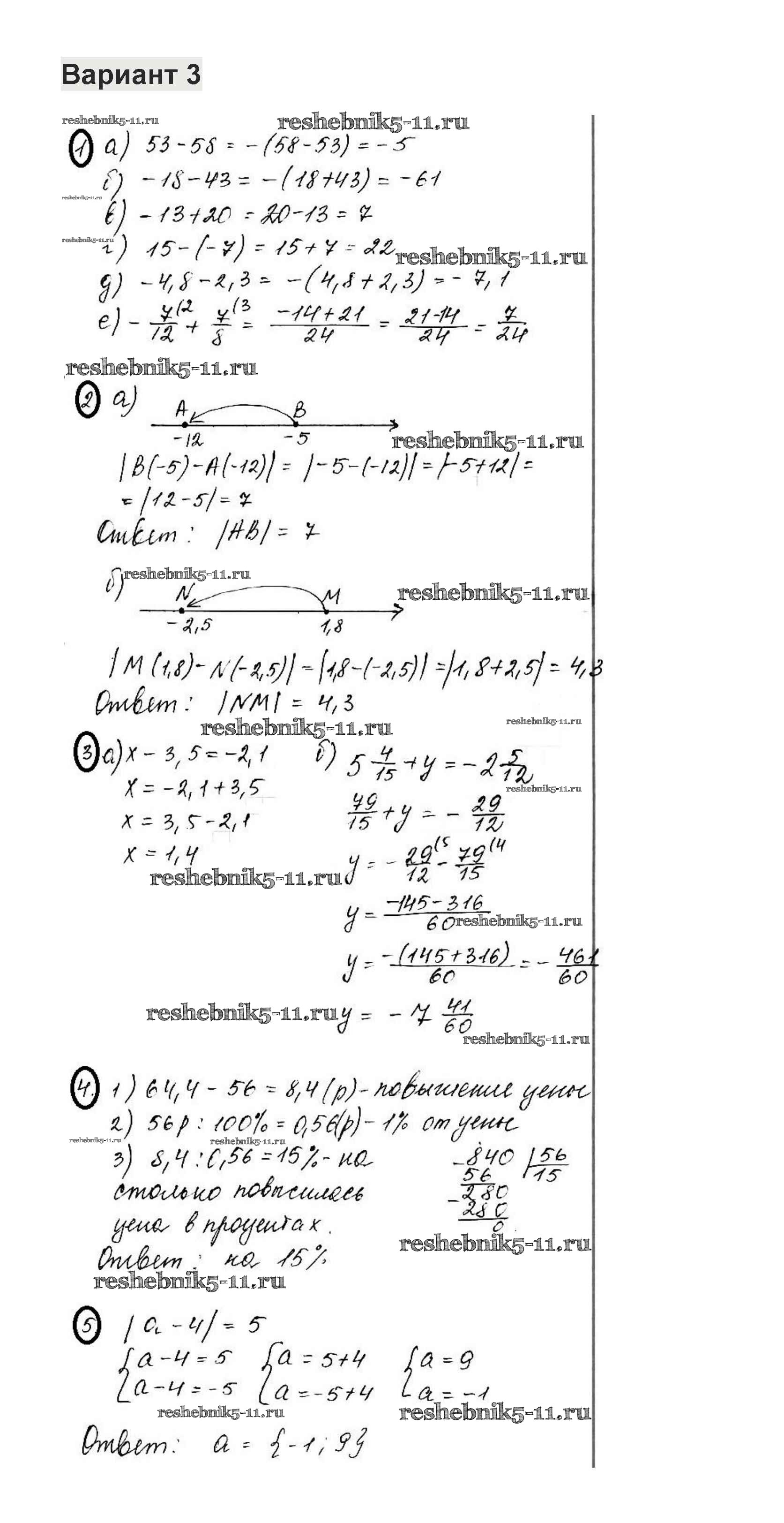 Готовая домашняя работа с ответами по Математике за 6 класс Жохов, Крайнева Контрольные работы Мнемозина 2011 ФГОС - КР-10. Варианты 3