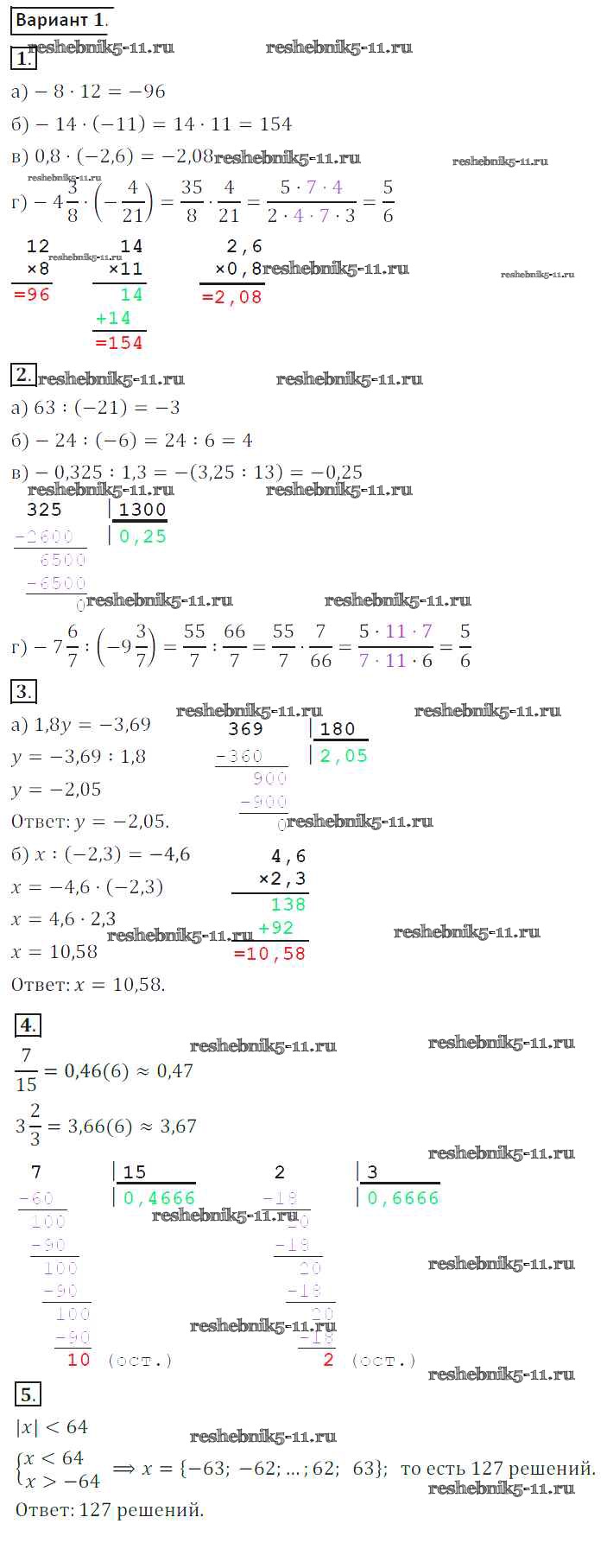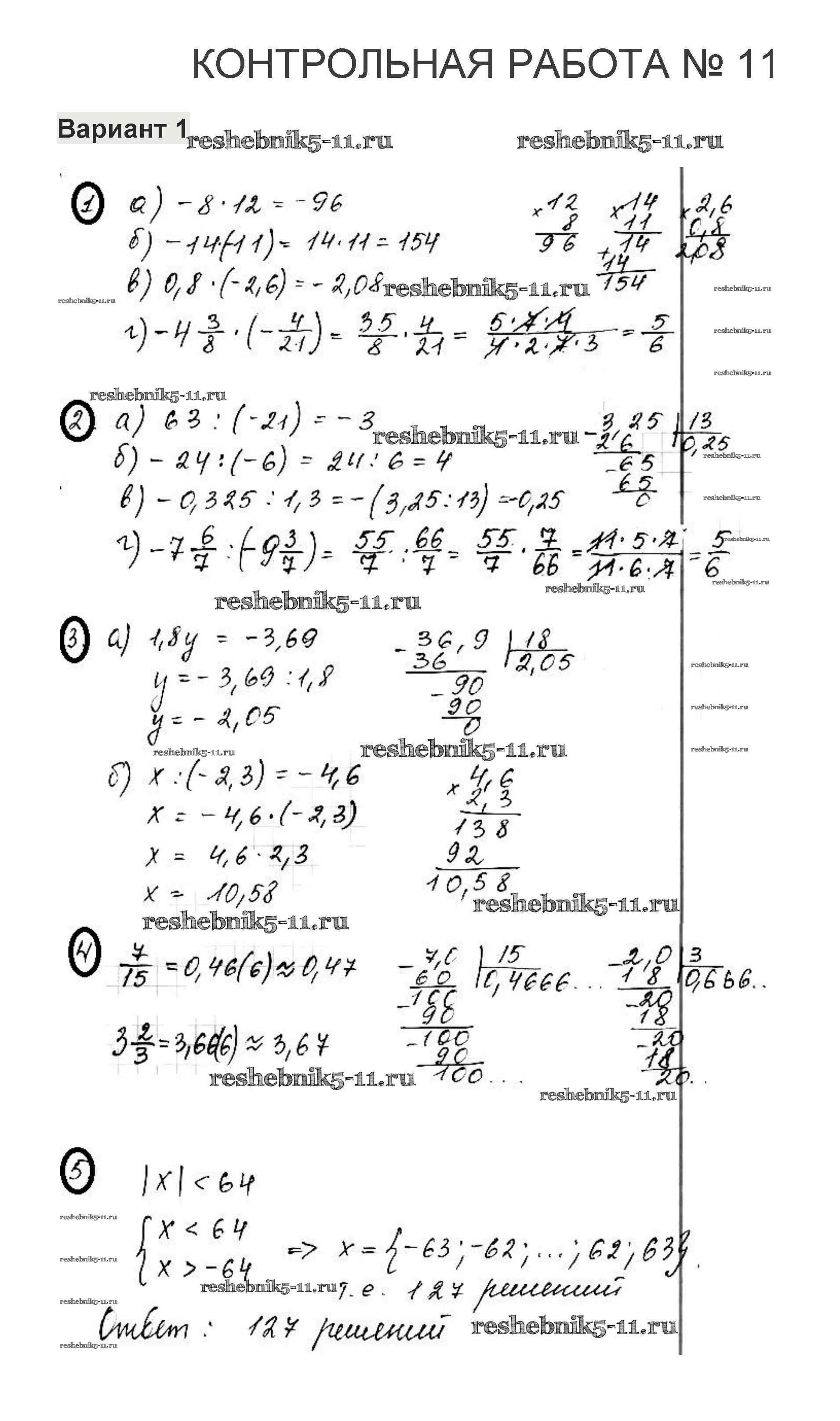 Готовая домашняя работа с ответами по Математике за 6 класс Жохов, Крайнева Контрольные работы Мнемозина 2011 ФГОС - КР-11. Варианты 1