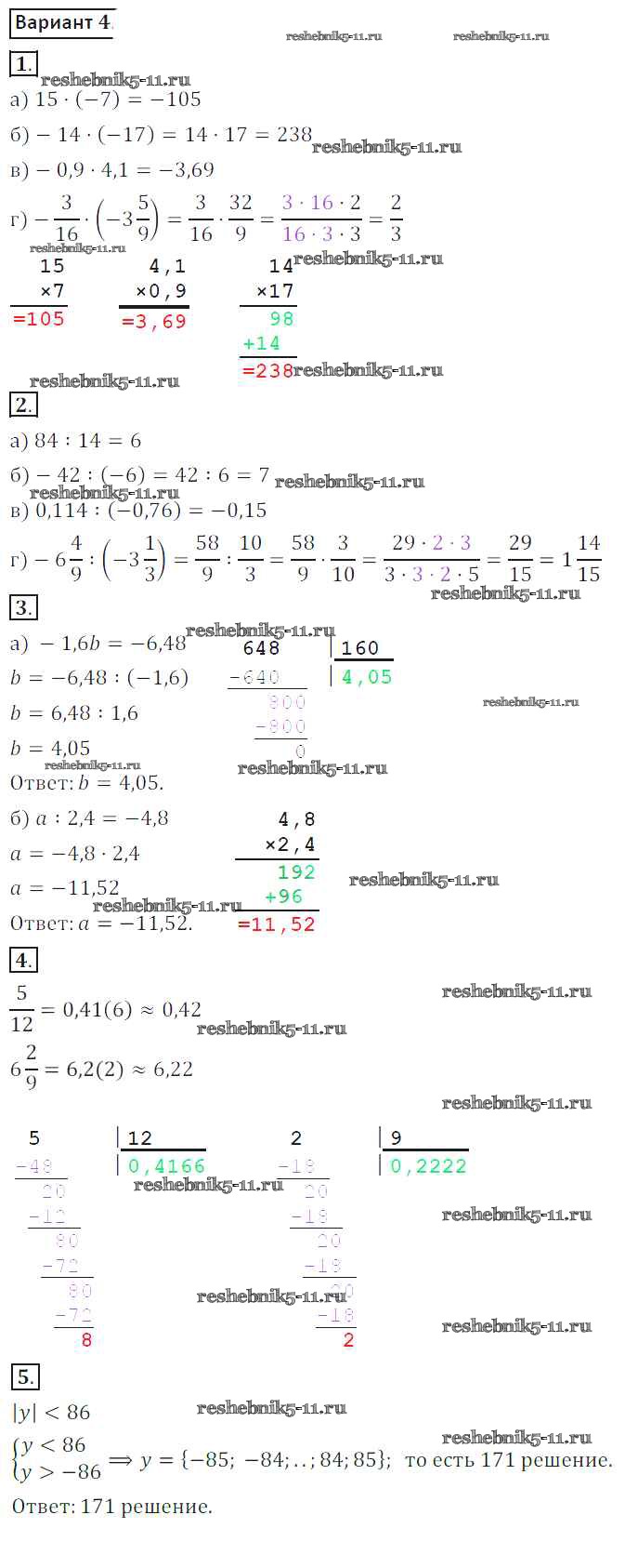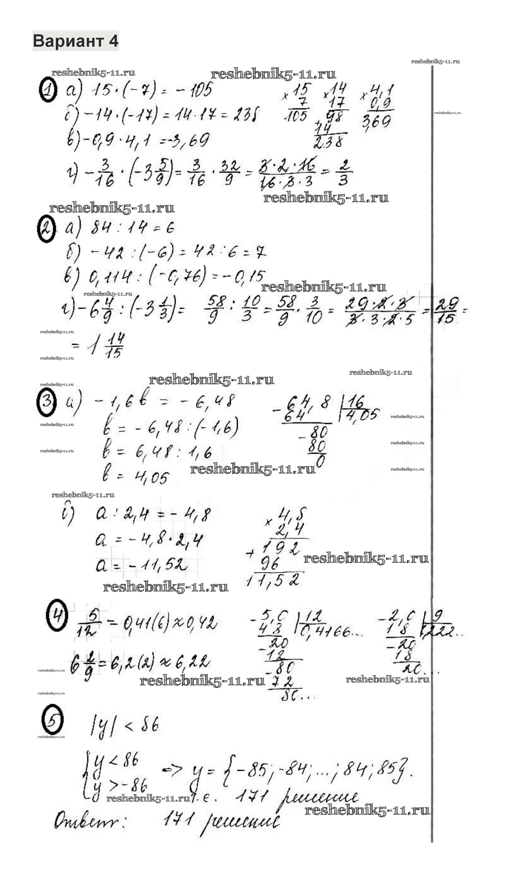 Готовая домашняя работа с ответами по Математике за 6 класс Жохов, Крайнева Контрольные работы Мнемозина 2011 ФГОС - КР-11. Варианты 4