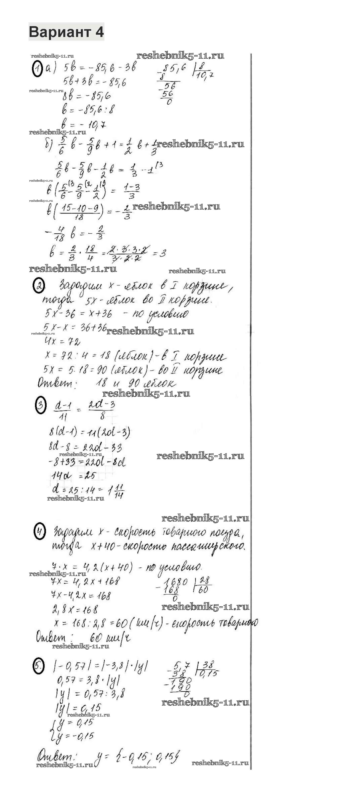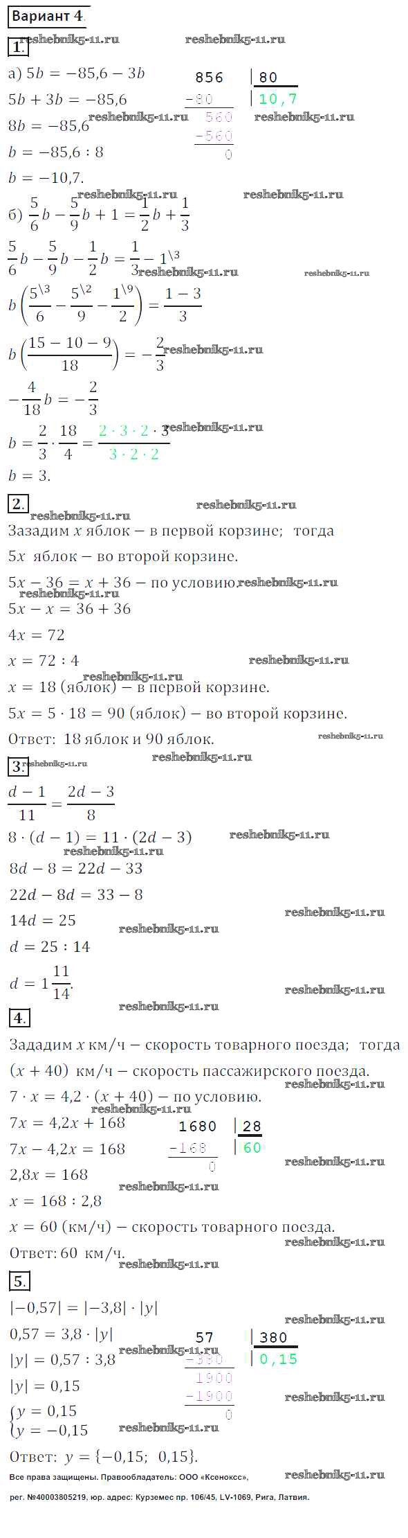 Готовая домашняя работа с ответами по Математике за 6 класс Жохов, Крайнева Контрольные работы Мнемозина 2011 ФГОС - КР-13. Варианты 4