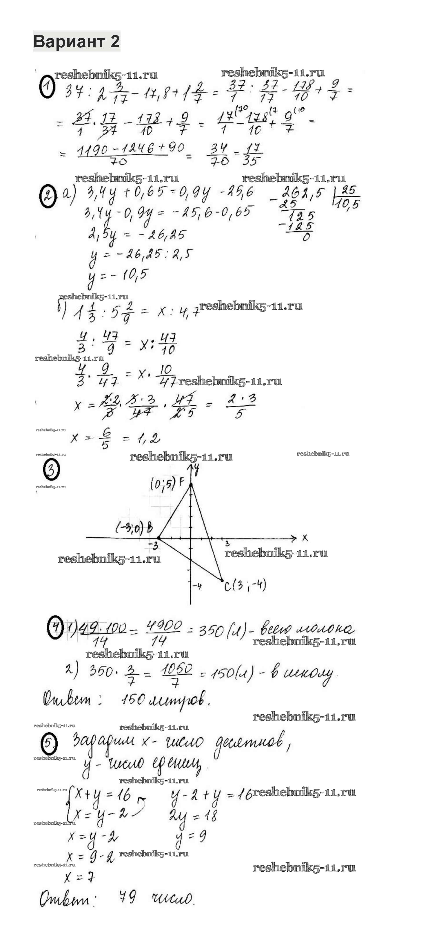 Готовая домашняя работа с ответами по Математике за 6 класс Жохов, Крайнева Контрольные работы Мнемозина 2011 ФГОС - КР-15. Варианты 2