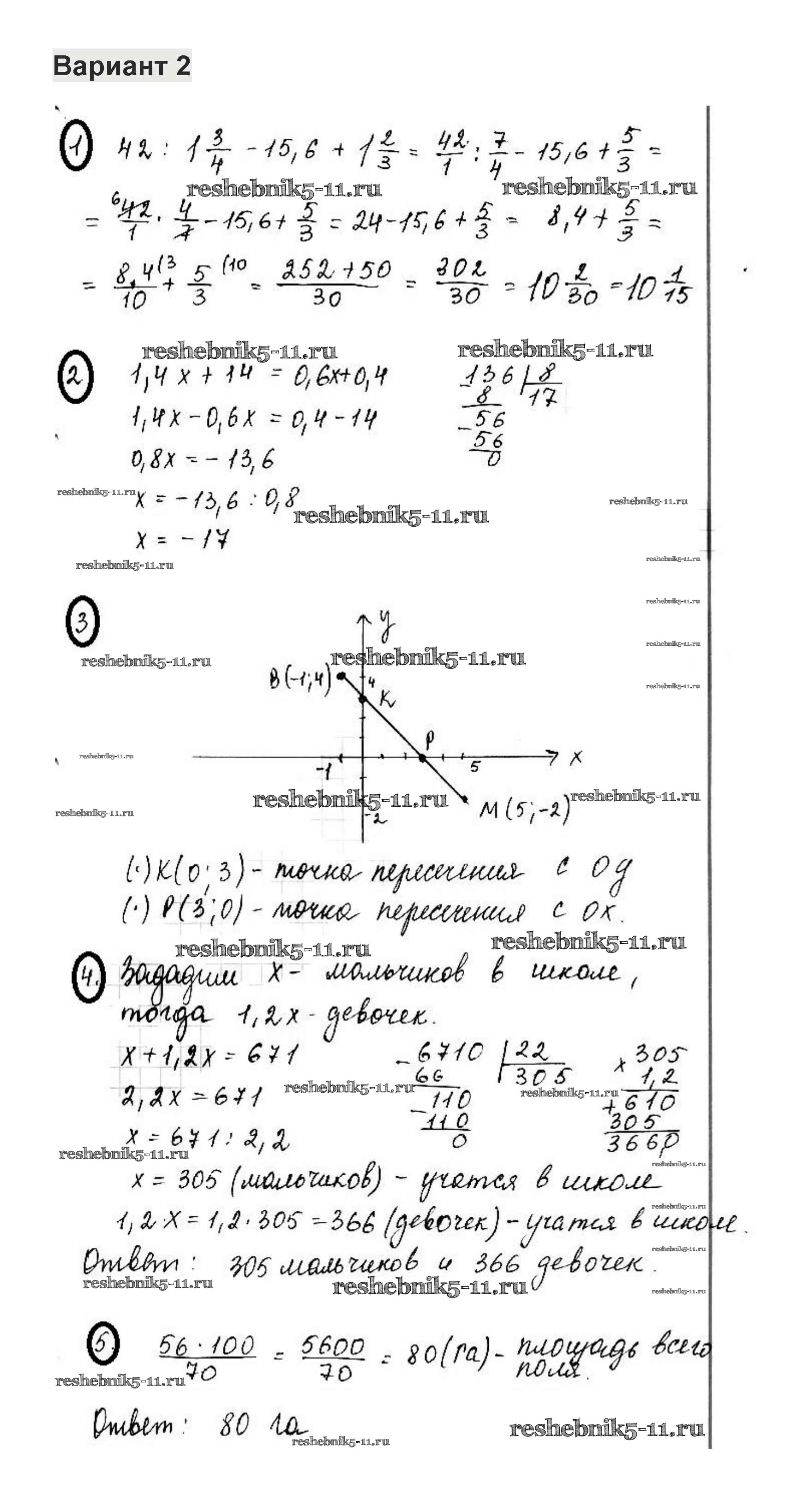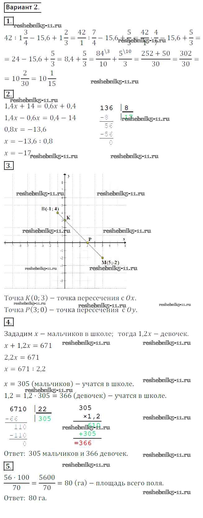Готовая домашняя работа с ответами по Математике за 6 класс Жохов, Крайнева Контрольные работы Мнемозина 2011 ФГОС - Итоговая контрольная работа 2