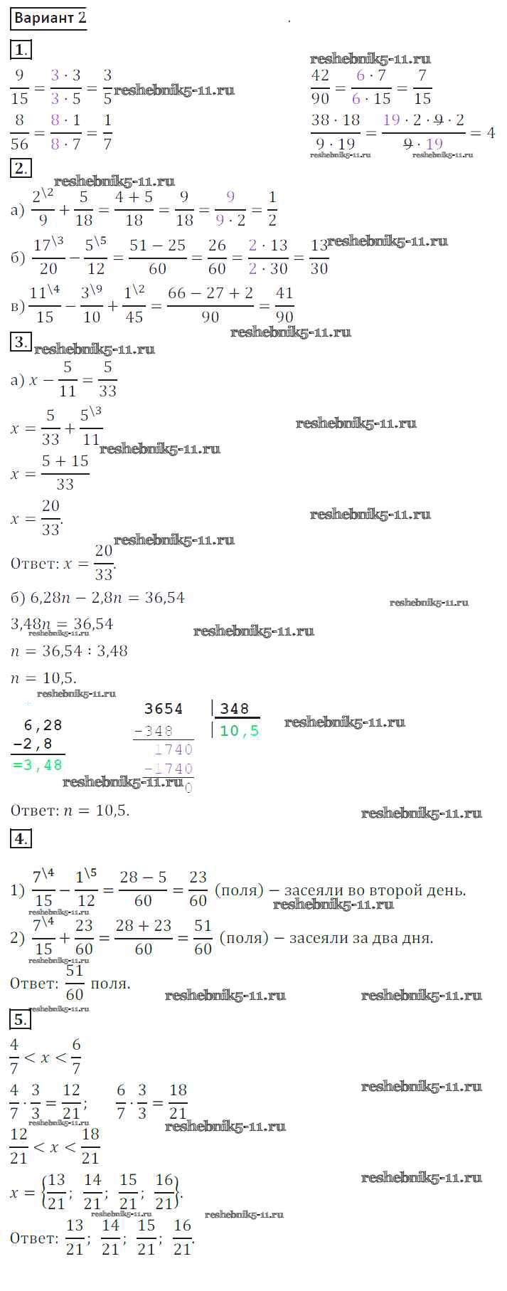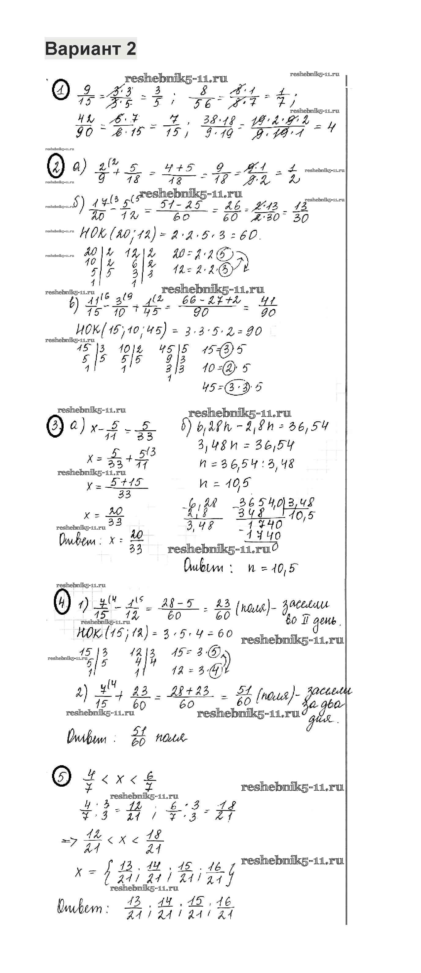 Готовая домашняя работа с ответами по Математике за 6 класс Жохов, Крайнева Контрольные работы Мнемозина 2011 ФГОС - КР-2. Варианты 2