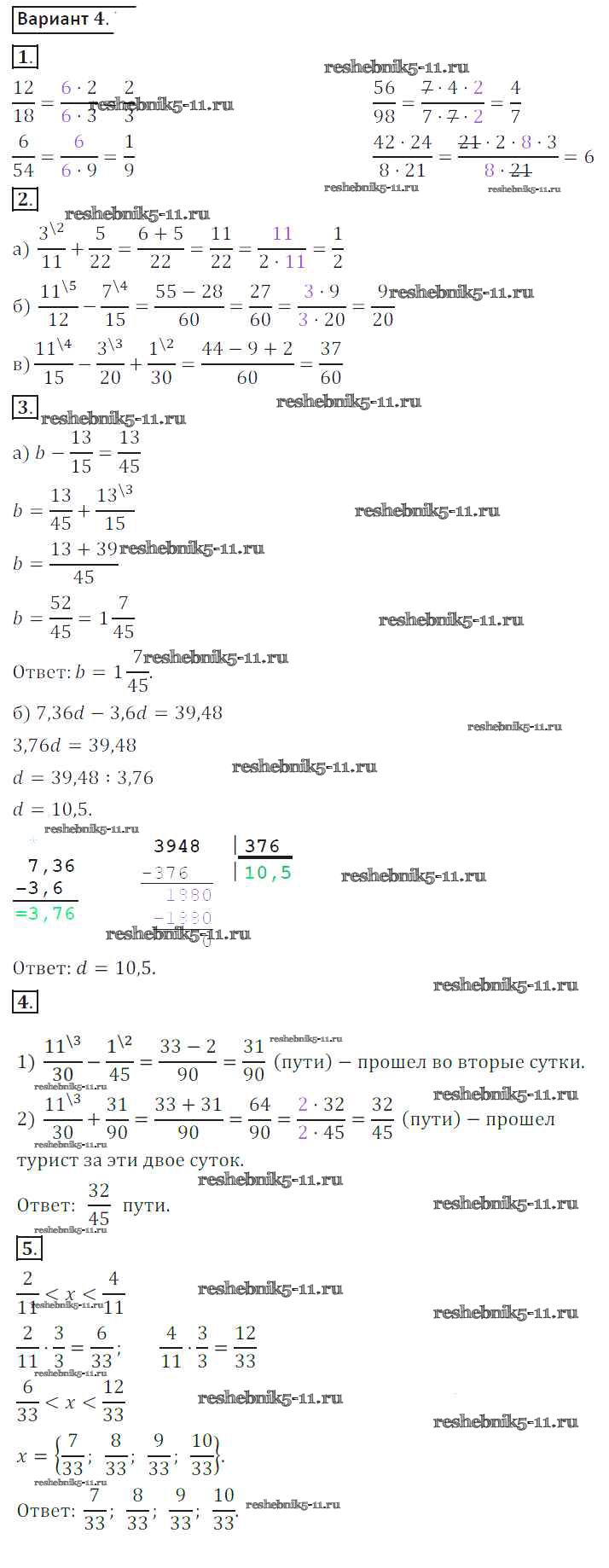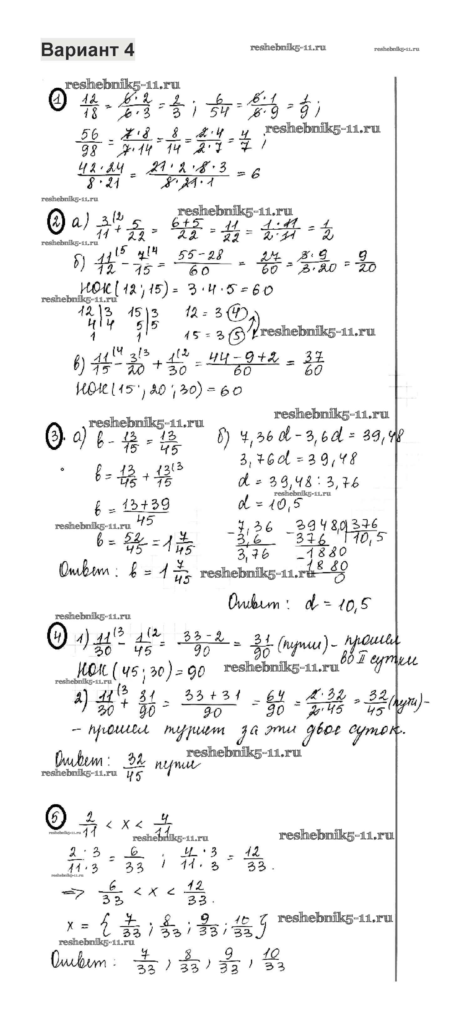 Готовая домашняя работа с ответами по Математике за 6 класс Жохов, Крайнева Контрольные работы Мнемозина 2011 ФГОС - КР-2. Варианты 4
