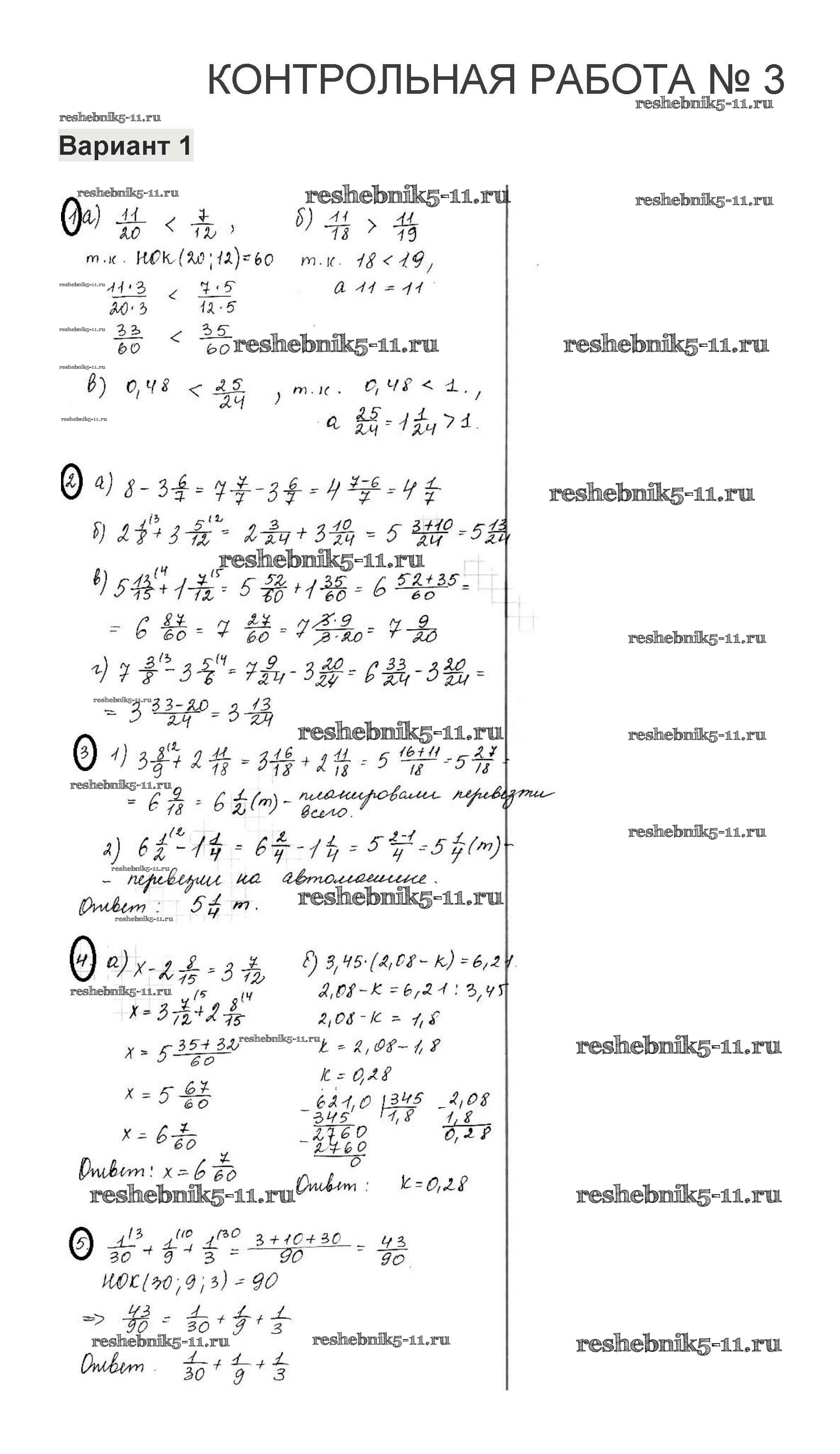 Готовая домашняя работа с ответами по Математике за 6 класс Жохов, Крайнева Контрольные работы Мнемозина 2011 ФГОС - КР-3. Варианты 1
