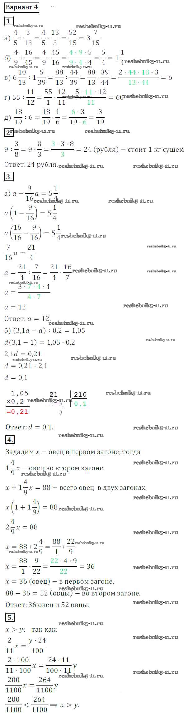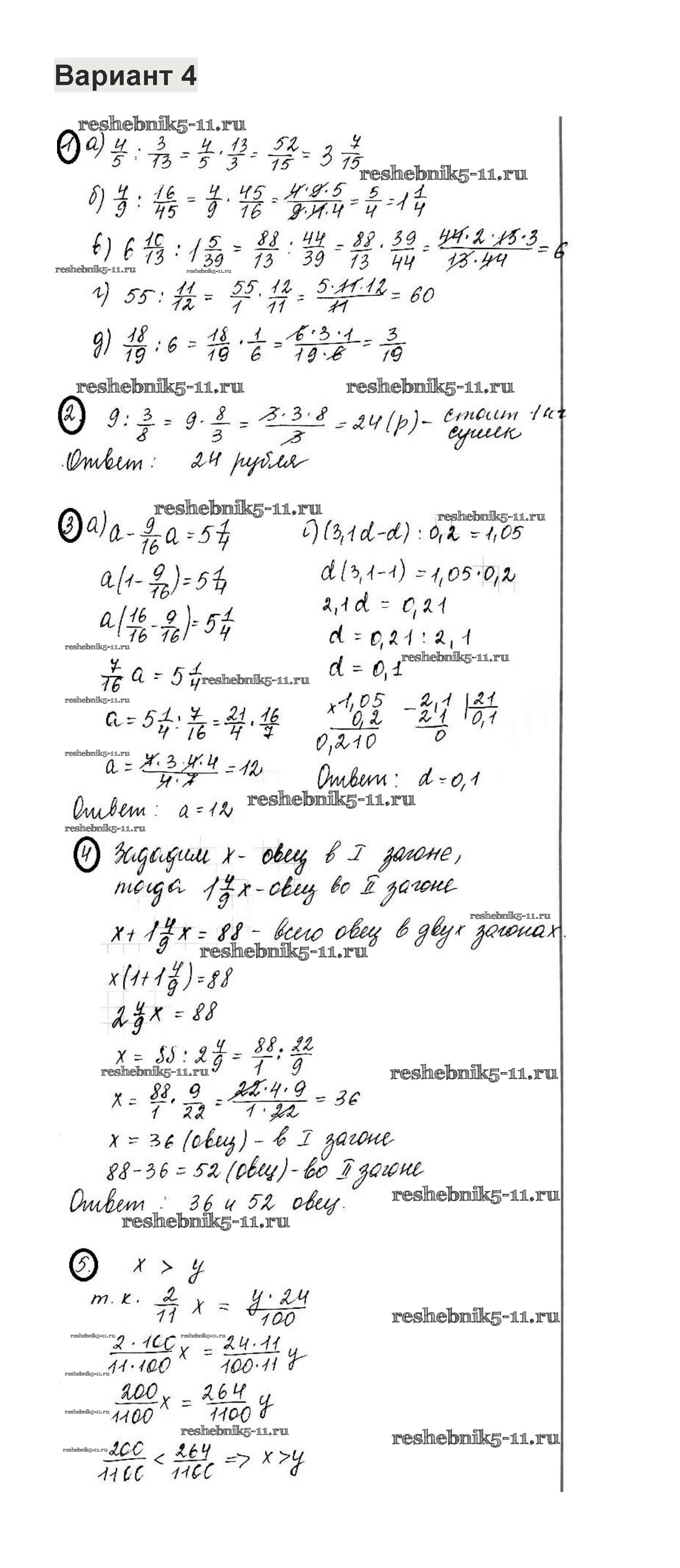 Готовая домашняя работа с ответами по Математике за 6 класс Жохов, Крайнева Контрольные работы Мнемозина 2011 ФГОС - КР-5. Варианты 4