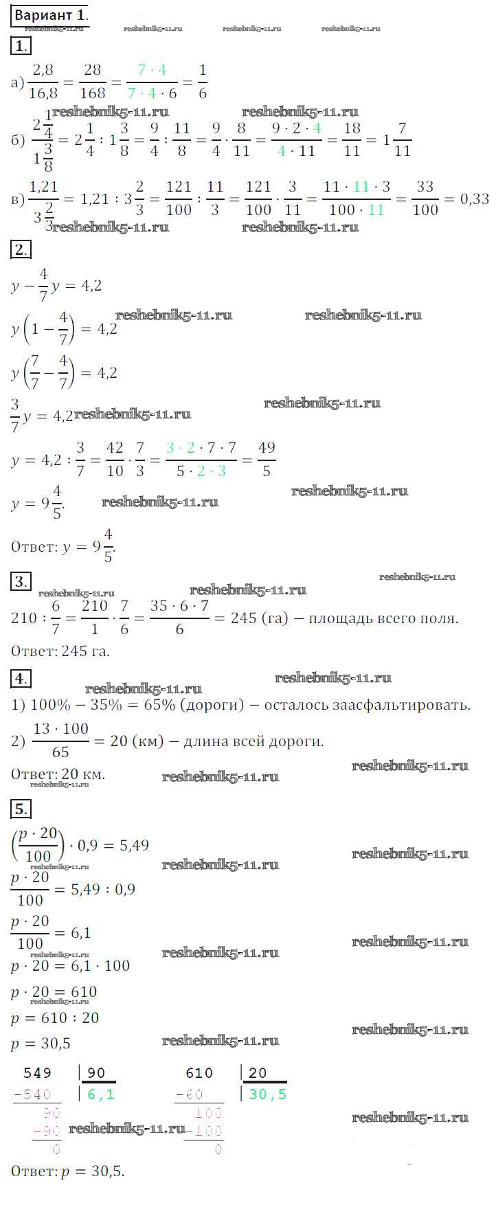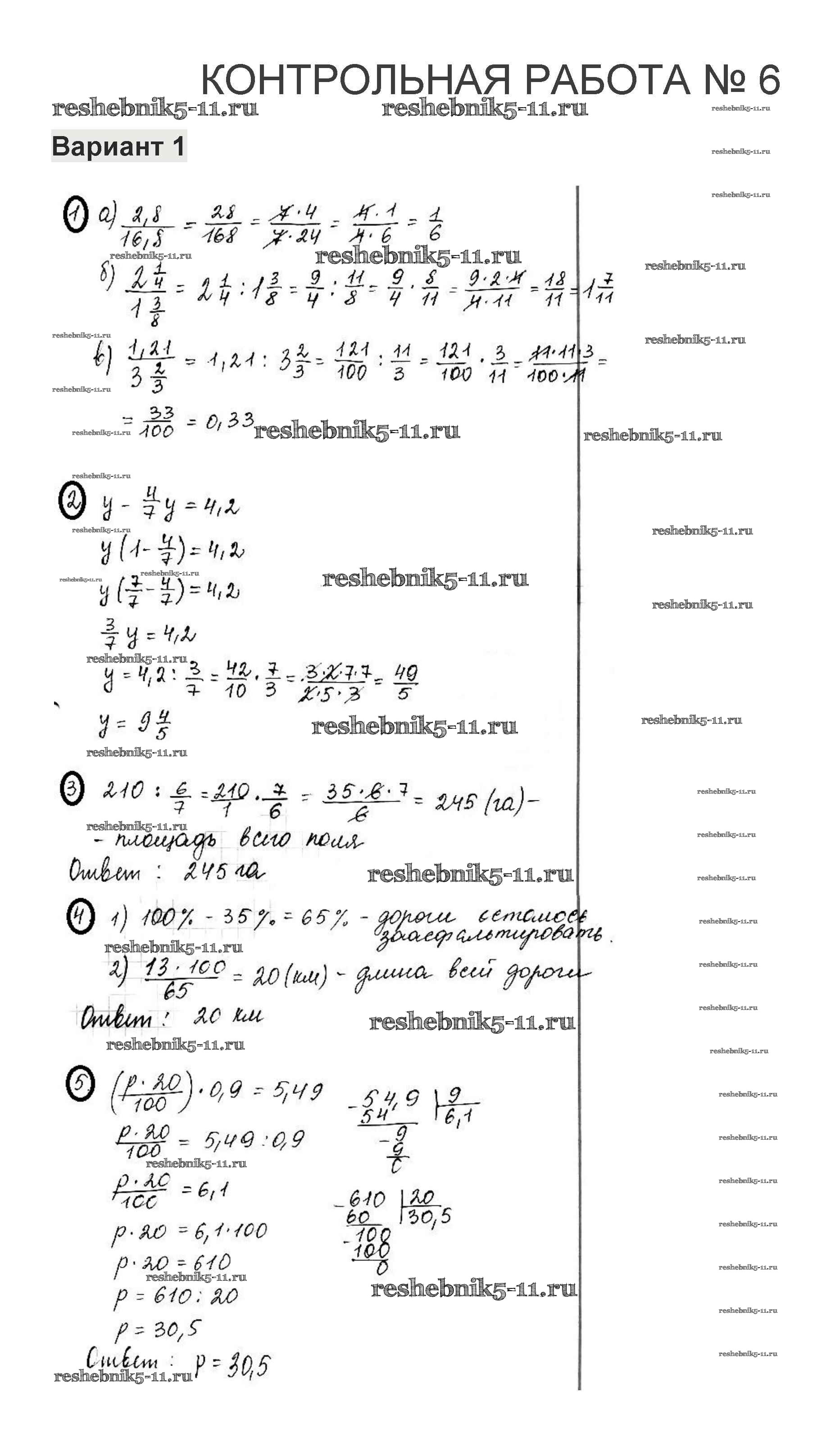 Готовая домашняя работа с ответами по Математике за 6 класс Жохов, Крайнева Контрольные работы Мнемозина 2011 ФГОС - КР-6. Варианты 1