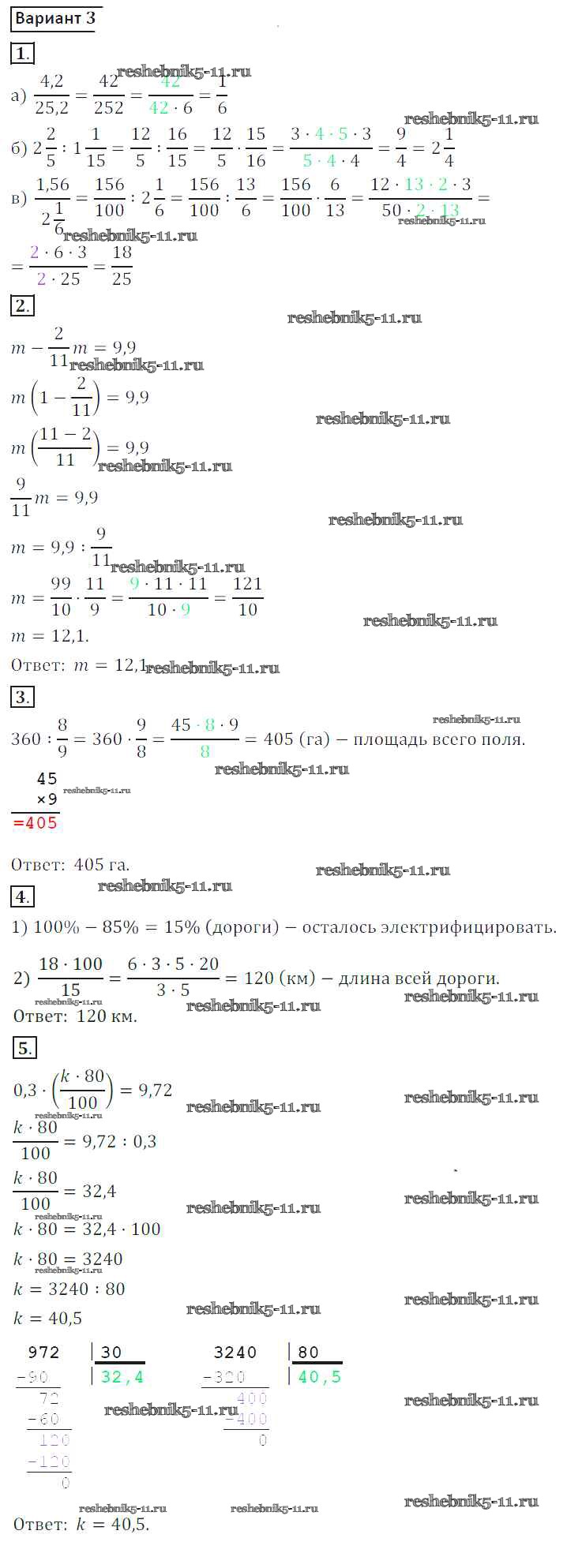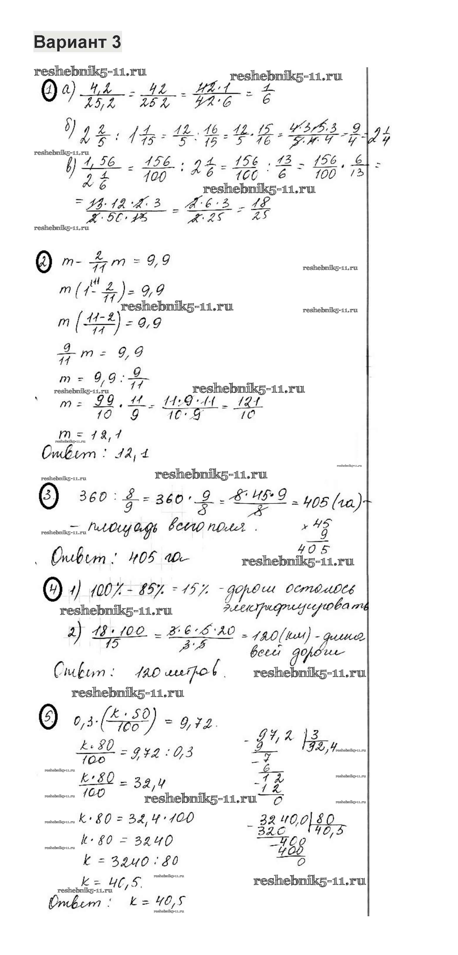 Готовая домашняя работа с ответами по Математике за 6 класс Жохов, Крайнева Контрольные работы Мнемозина 2011 ФГОС - КР-6. Варианты 3