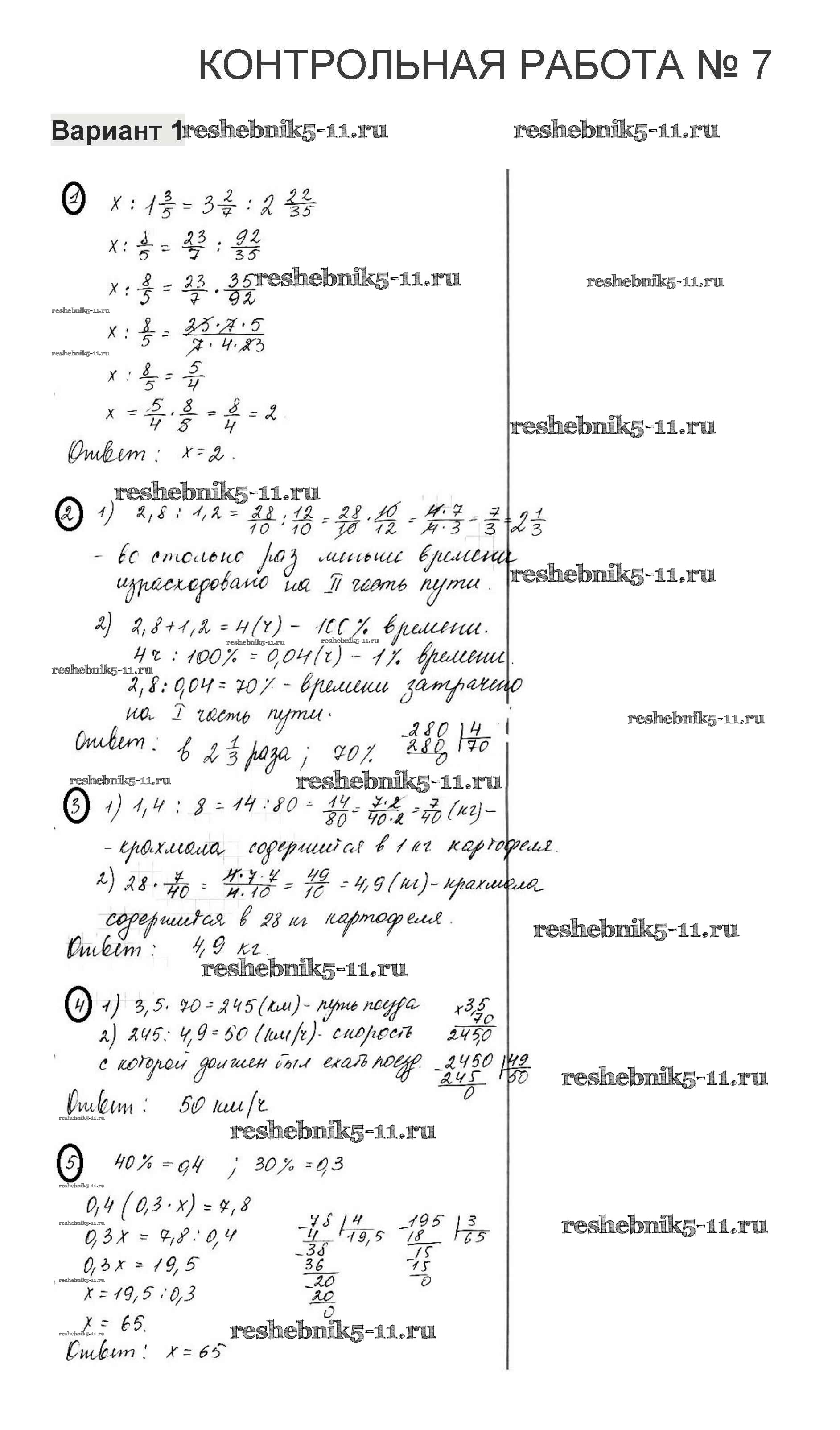 Готовая домашняя работа с ответами по Математике за 6 класс Жохов, Крайнева Контрольные работы Мнемозина 2011 ФГОС - КР-7. Варианты 1