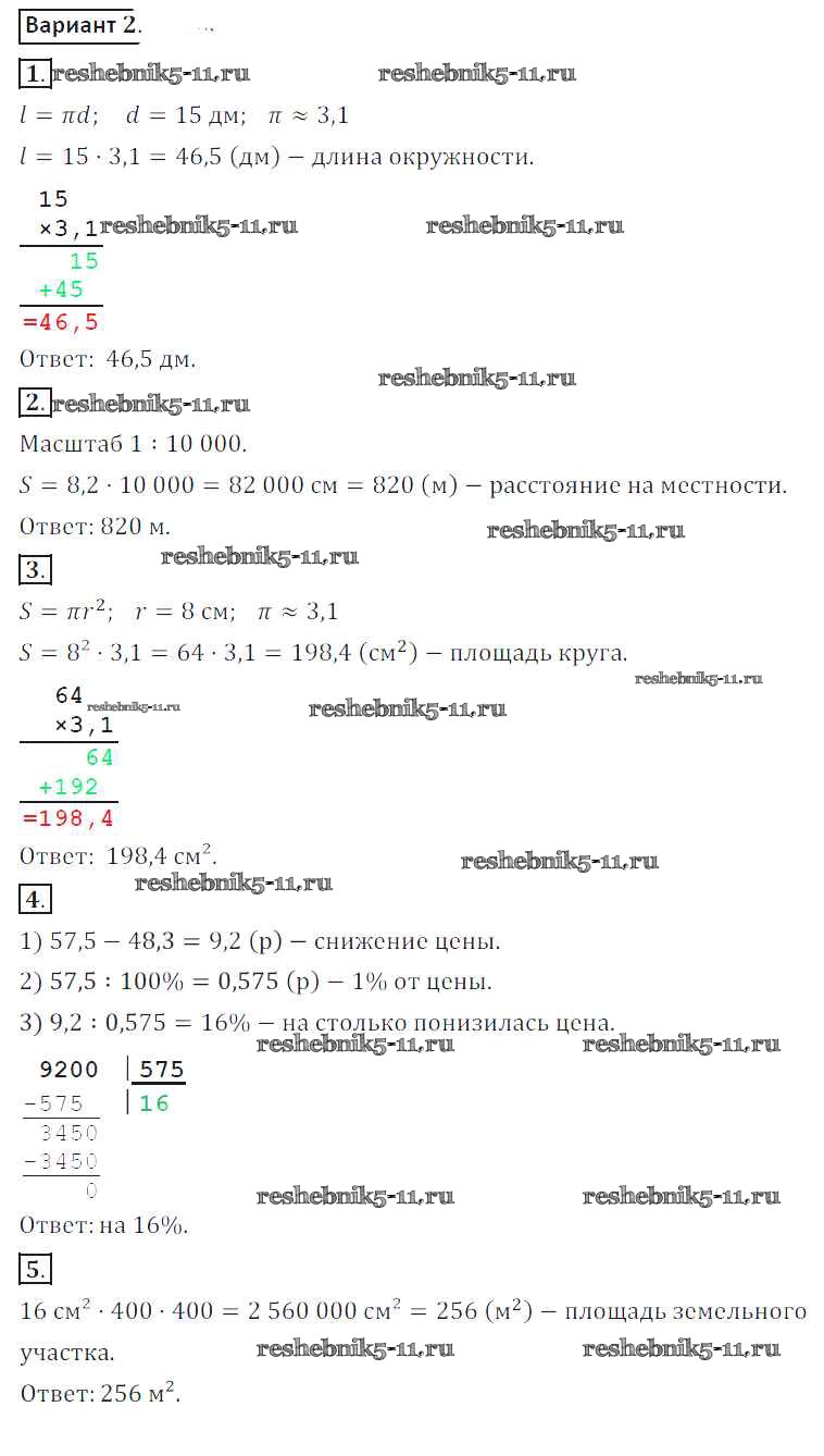 Готовая домашняя работа с ответами по Математике за 6 класс Жохов, Крайнева Контрольные работы Мнемозина 2011 ФГОС - КР-8. Варианты 2