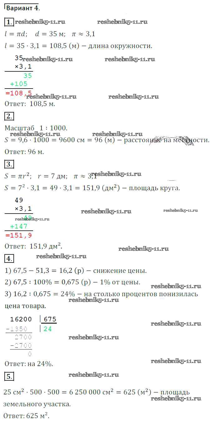 Готовая домашняя работа с ответами по Математике за 6 класс Жохов, Крайнева Контрольные работы Мнемозина 2011 ФГОС - КР-8. Варианты 4