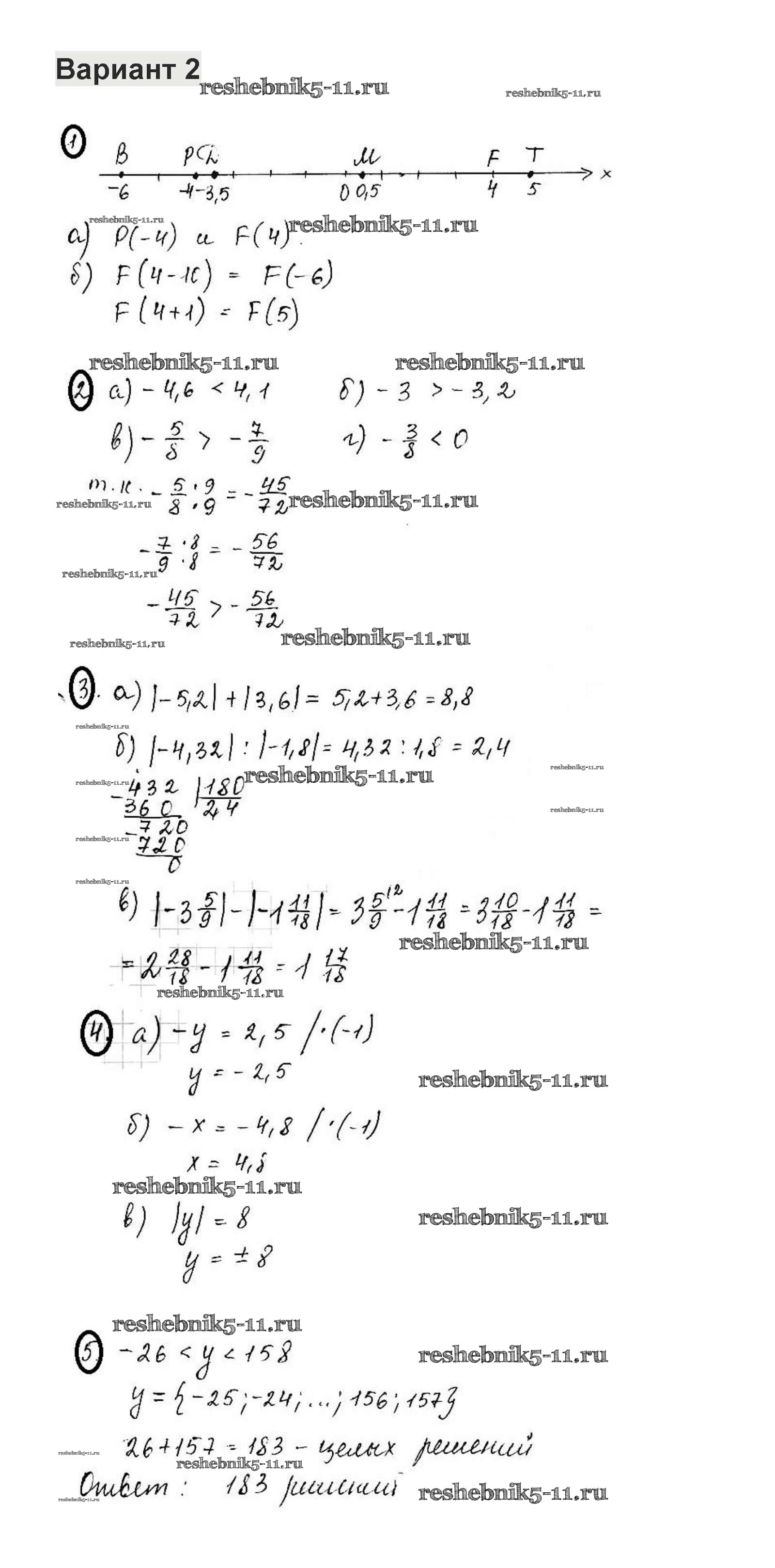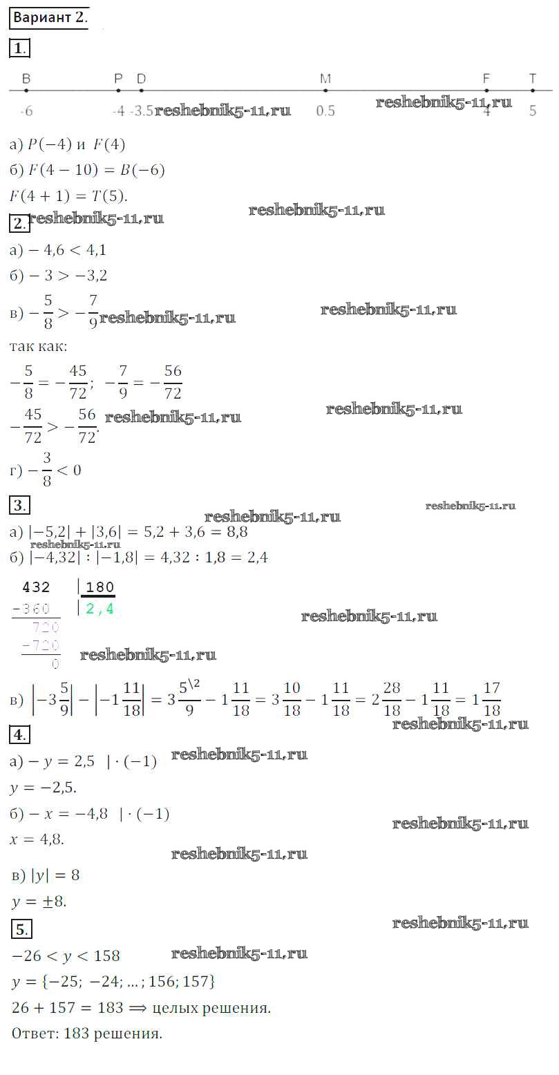 Готовая домашняя работа с ответами по Математике за 6 класс Жохов, Крайнева Контрольные работы Мнемозина 2011 ФГОС - КР-9. Варианты 2