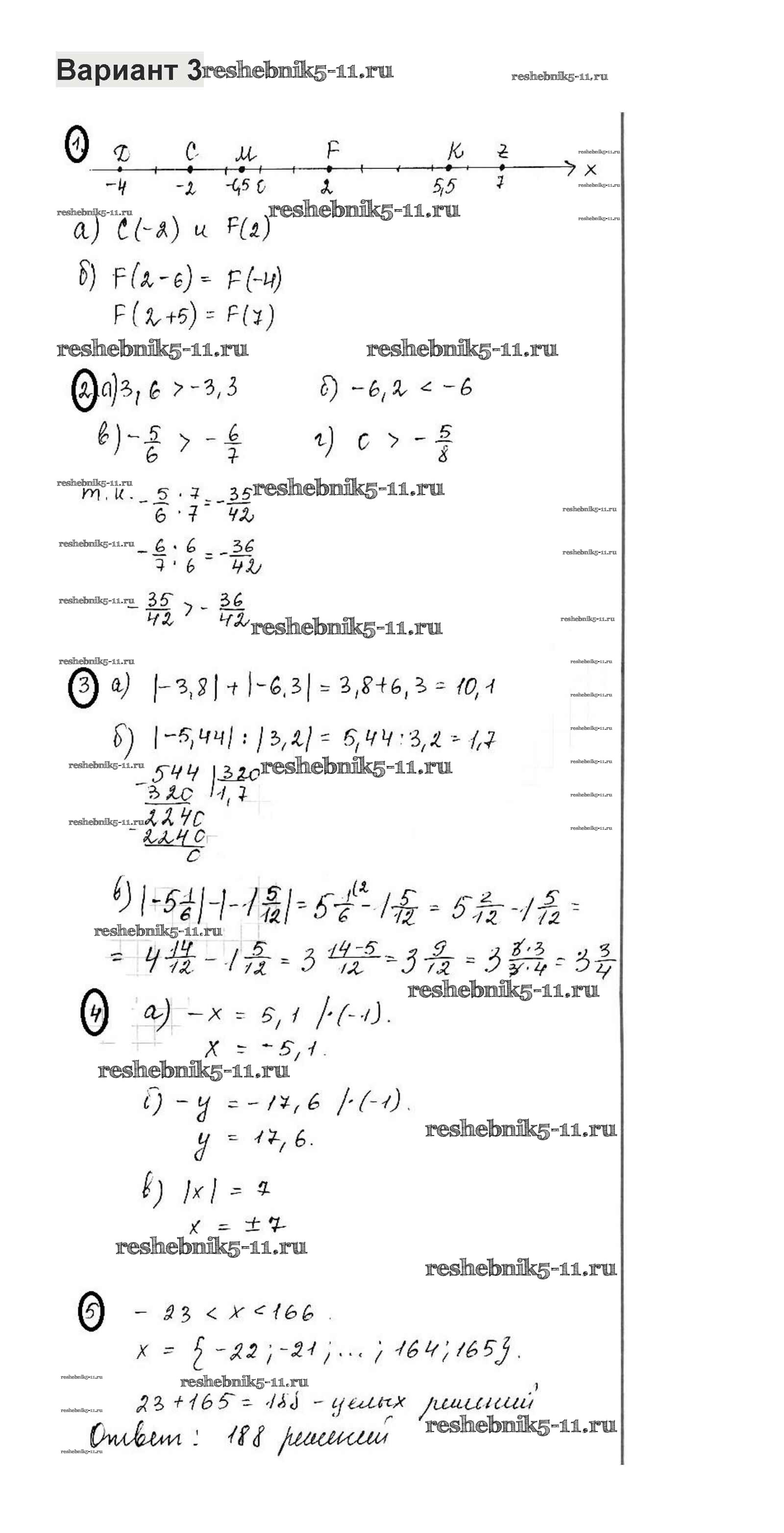 Готовая домашняя работа с ответами по Математике за 6 класс Жохов, Крайнева Контрольные работы Мнемозина 2011 ФГОС - КР-9. Варианты 3
