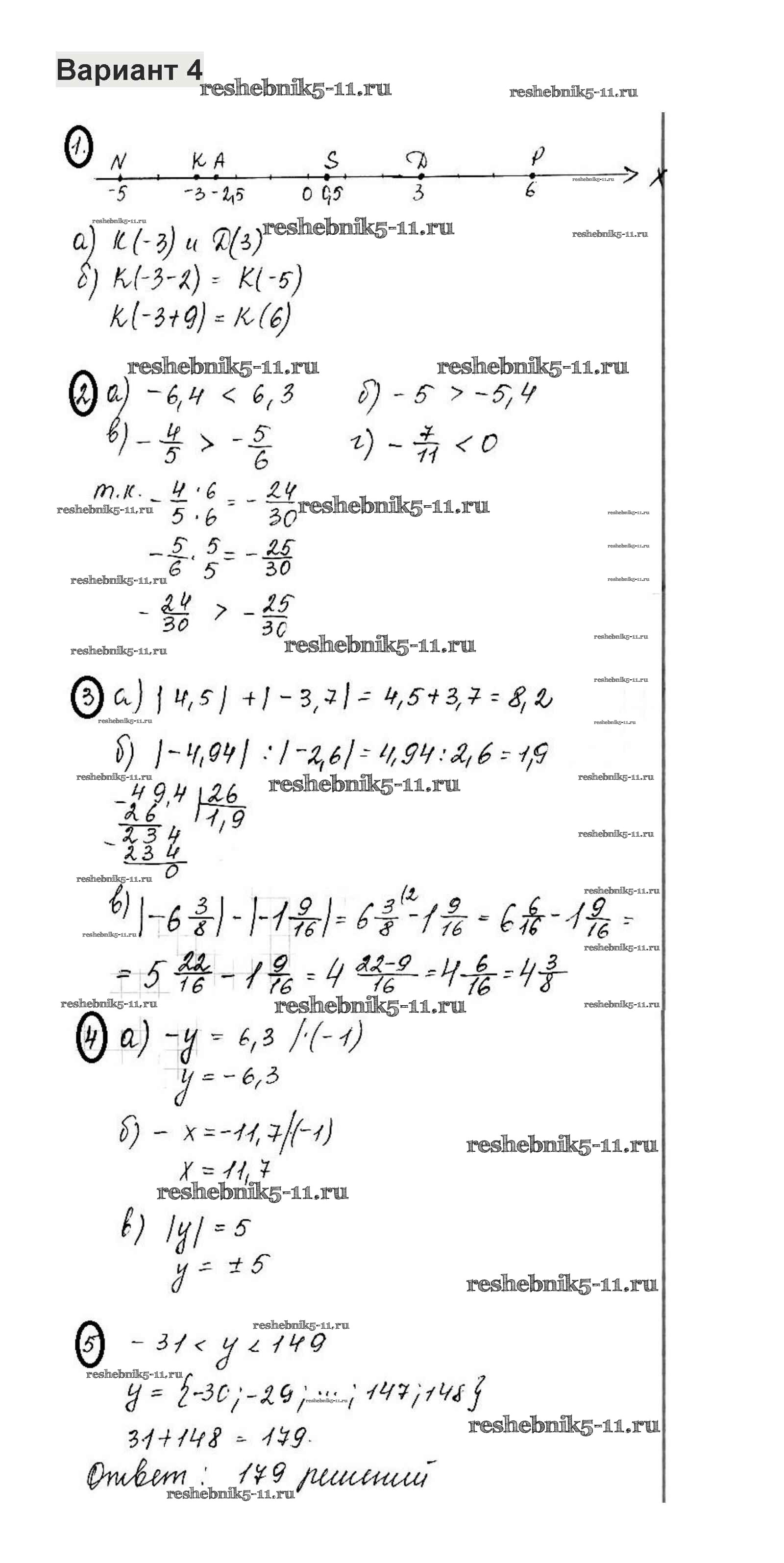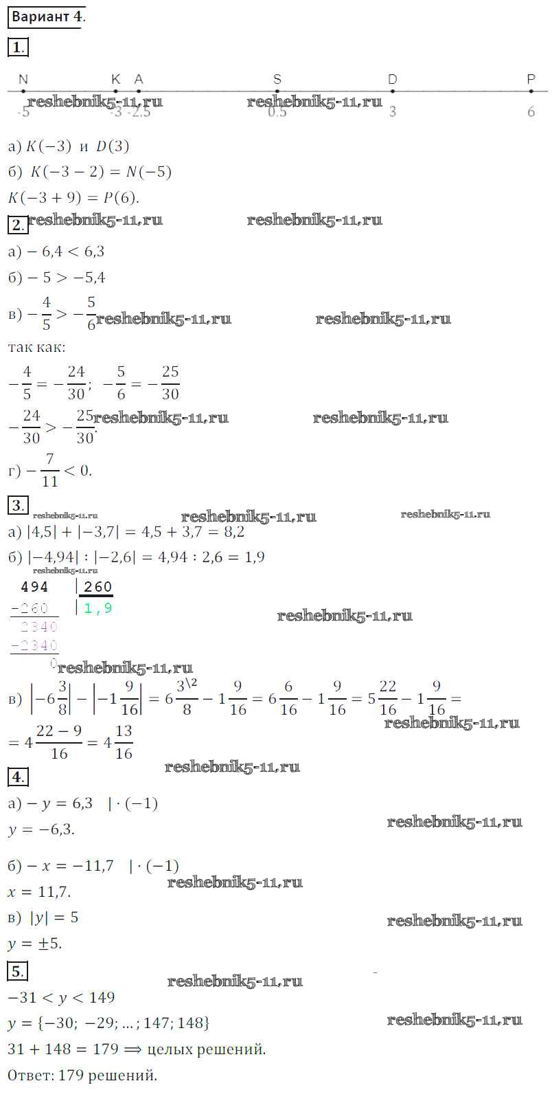 Готовая домашняя работа с ответами по Математике за 6 класс Жохов, Крайнева Контрольные работы Мнемозина 2011 ФГОС - КР-9. Варианты 4
