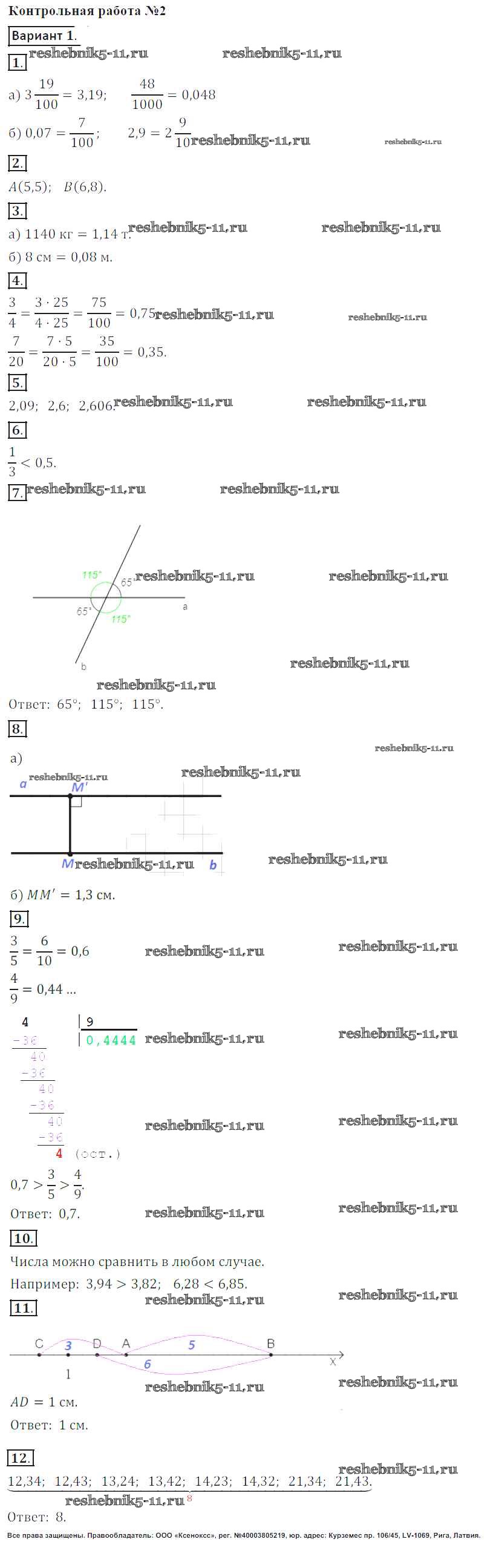 Готовая домашняя работа с ответами по Математике за 6 класс Кузнецова, Минаева, Рослова, Суворова Контрольные работы Просвещение 2017 ФГОС - КР-2. Варианты 1