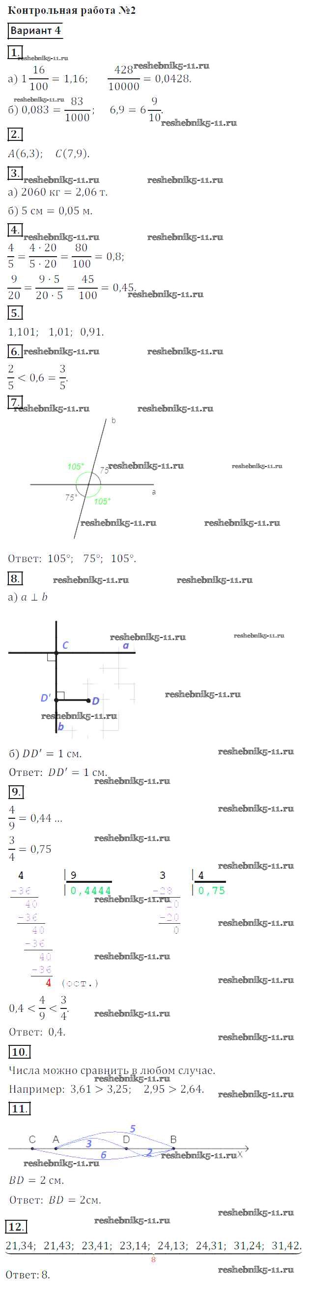 Готовая домашняя работа с ответами по Математике за 6 класс Кузнецова, Минаева, Рослова, Суворова Контрольные работы Просвещение 2017 ФГОС - КР-2. Варианты 4