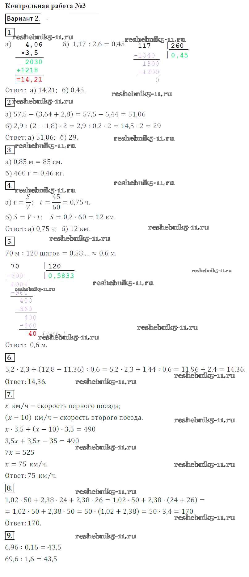 Готовая домашняя работа с ответами по Математике за 6 класс Кузнецова, Минаева, Рослова, Суворова Контрольные работы Просвещение 2017 ФГОС - КР-3. Варианты 2
