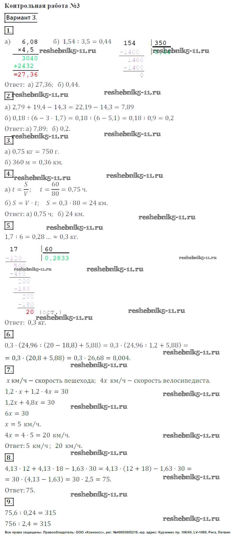 Готовая домашняя работа с ответами по Математике за 6 класс Кузнецова, Минаева, Рослова, Суворова Контрольные работы Просвещение 2017 ФГОС - КР-3. Варианты 3