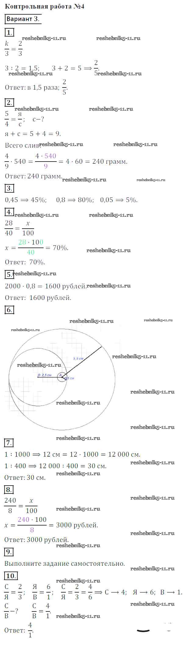 Готовая домашняя работа с ответами по Математике за 6 класс Кузнецова, Минаева, Рослова, Суворова Контрольные работы Просвещение 2017 ФГОС - КР-4. Варианты 3