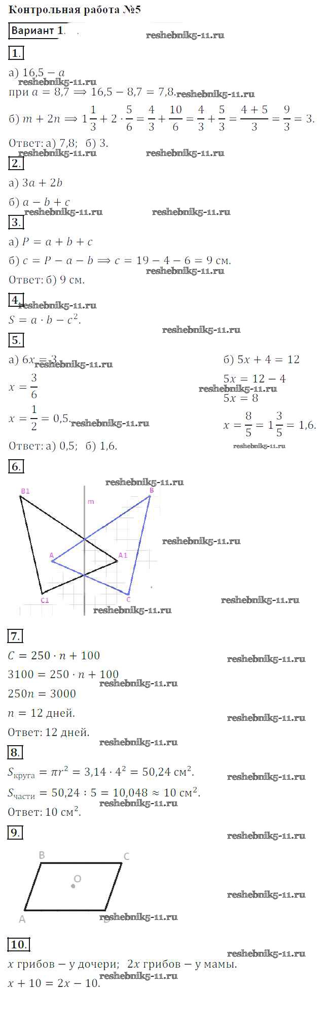 Готовая домашняя работа с ответами по Математике за 6 класс Кузнецова, Минаева, Рослова, Суворова Контрольные работы Просвещение 2017 ФГОС - КР-5. Варианты 1